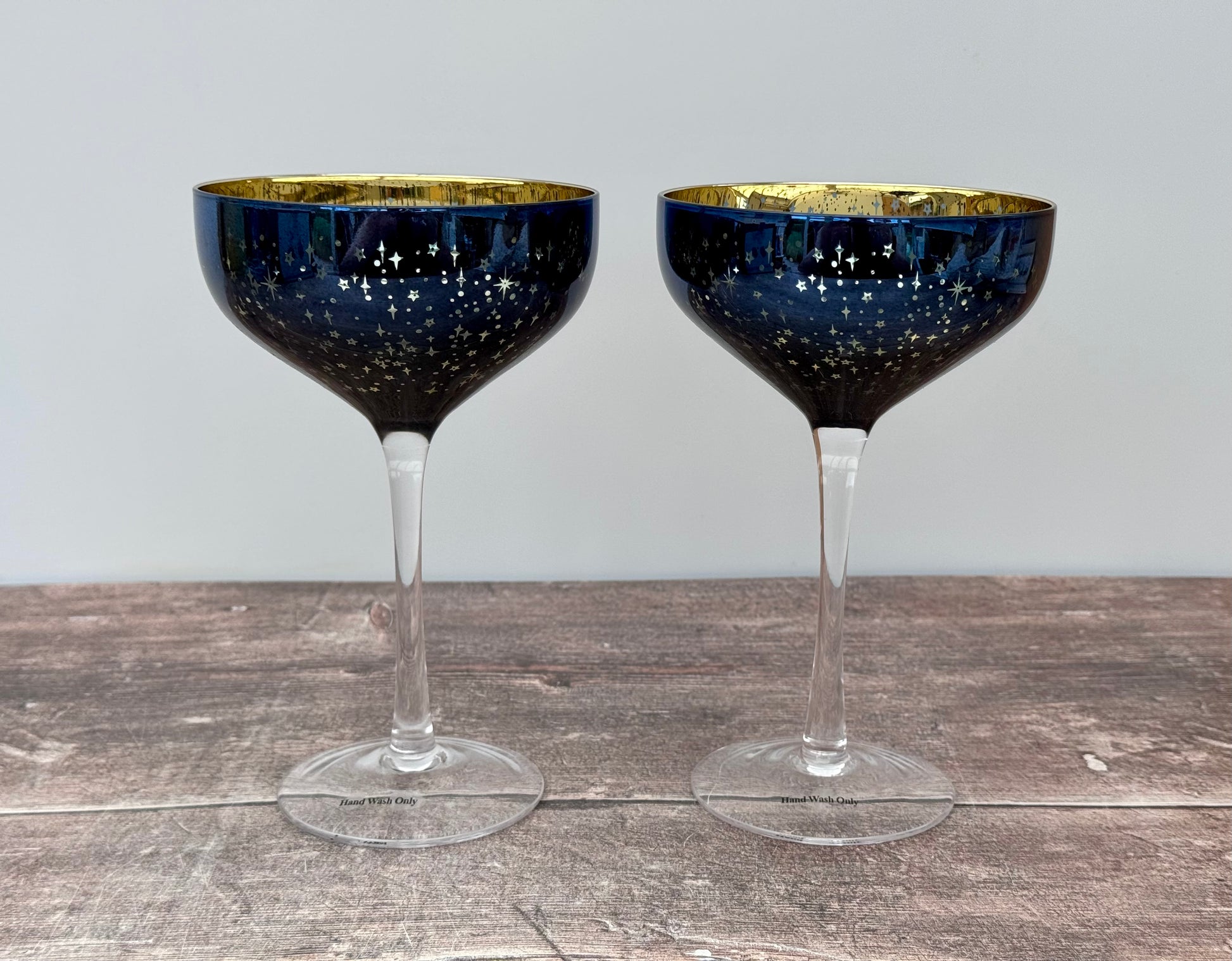 2 Galaxy Champagne/Cocktail Saucer Glasses