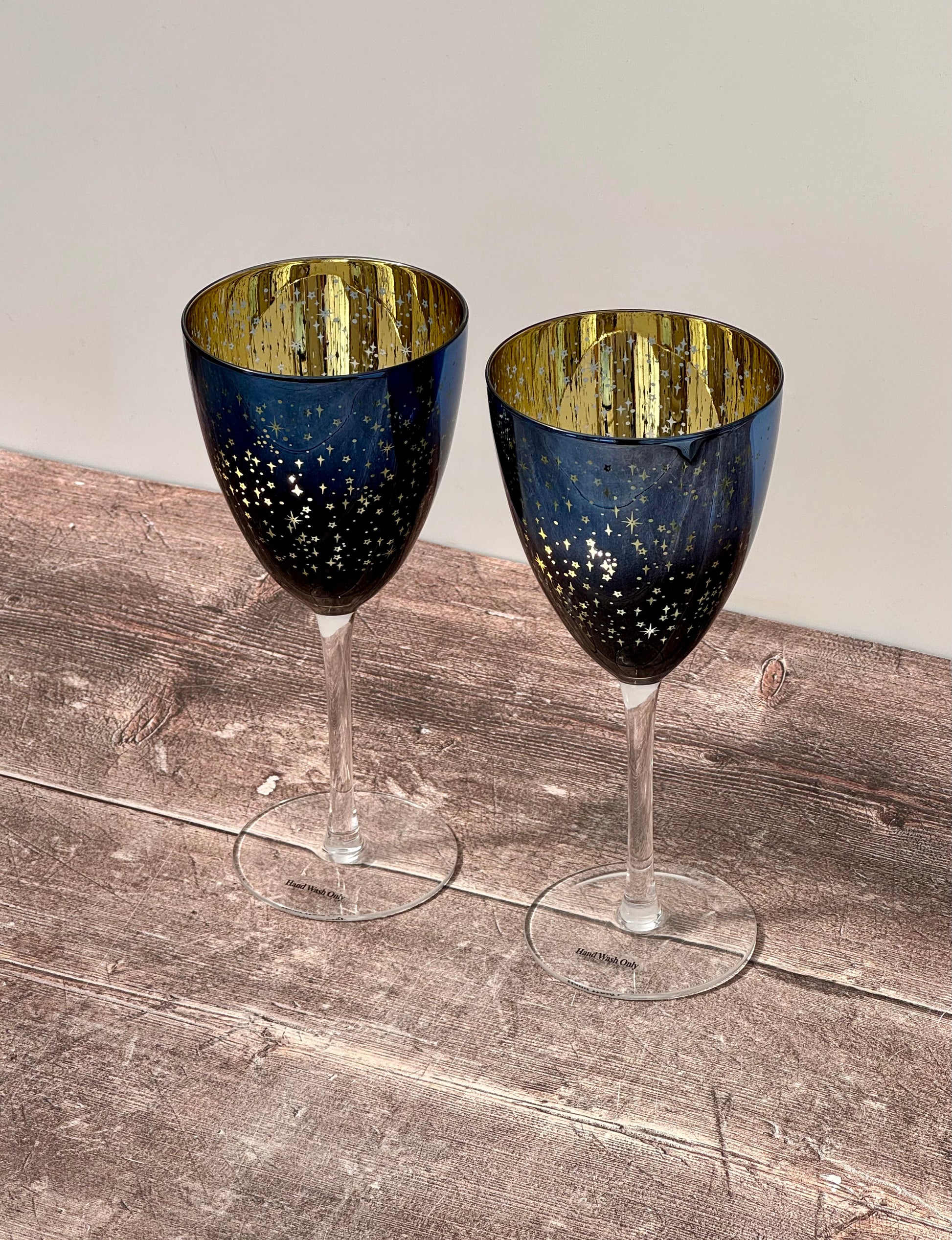 Add a touch of glamour to your glassware with these beautiful mouth blown and hand crafted star patterned wine glasses.