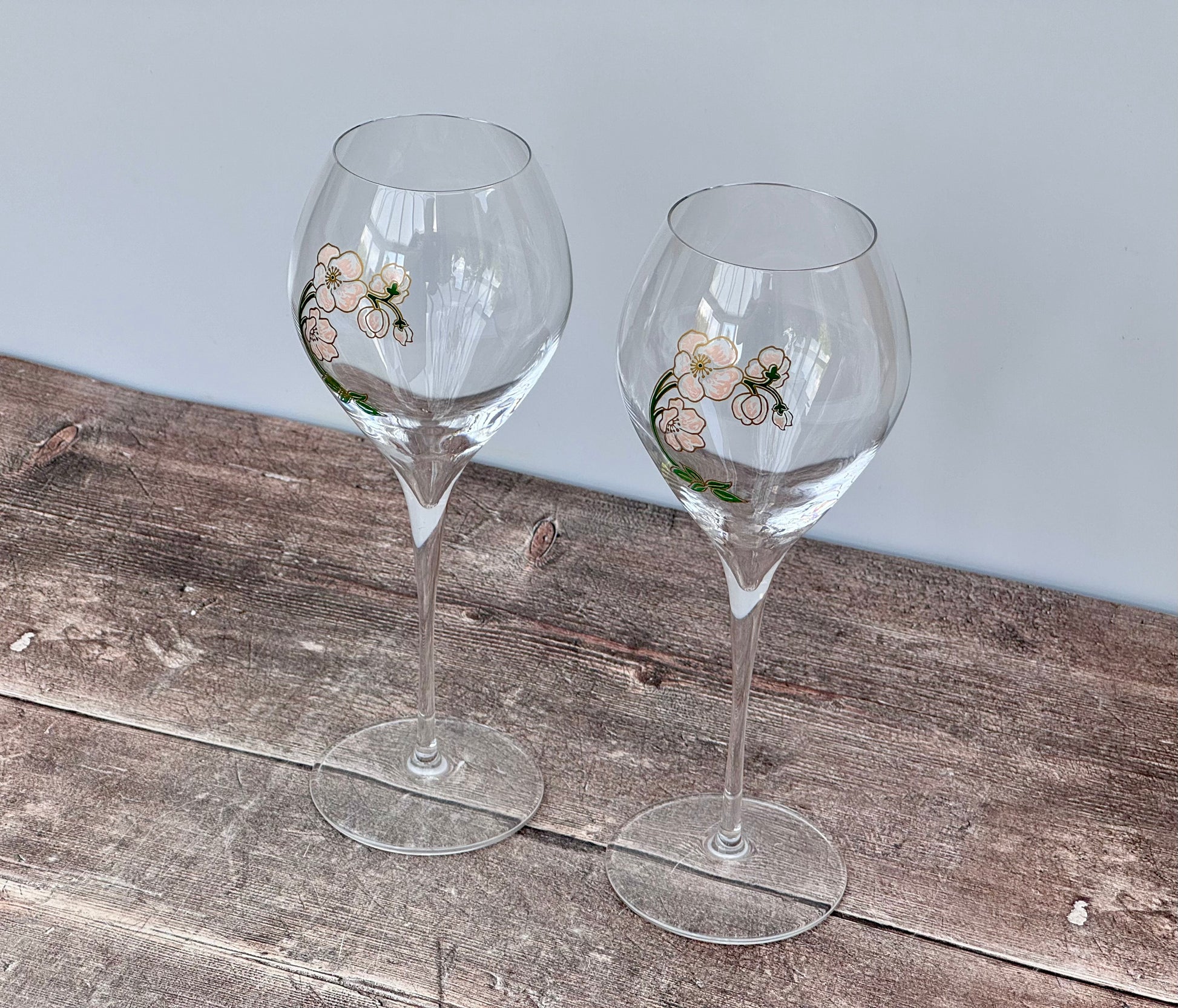 These stunning glasses are from Perrier-Jouet and have the iconic Belle Époque flower detail.