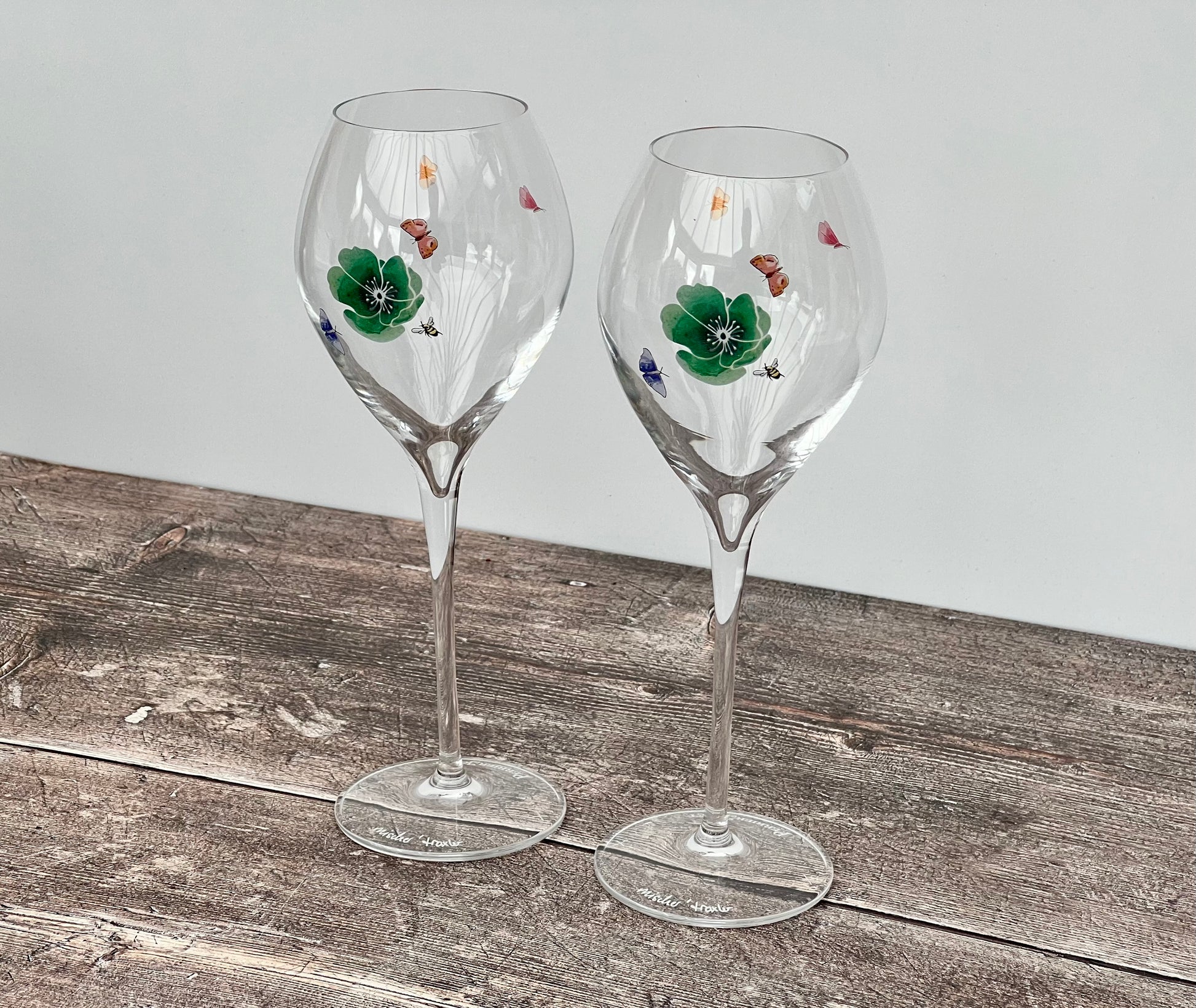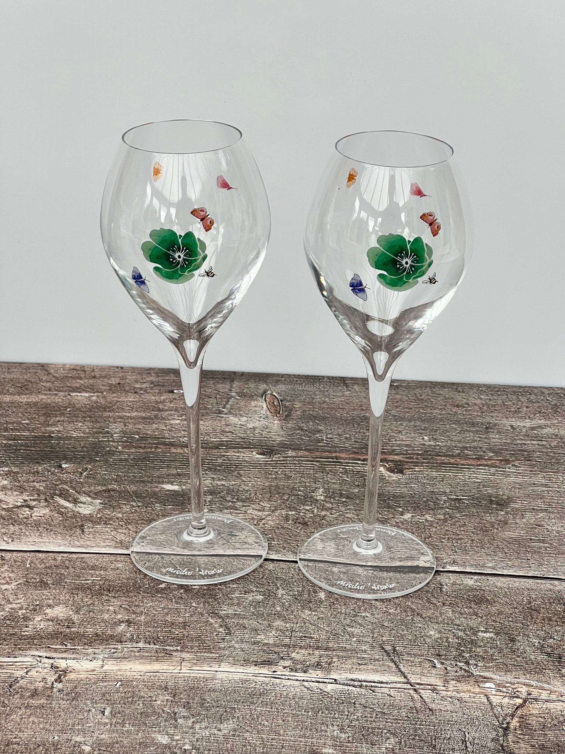 Pair of Perrier-Jouet Mischer Traxler Green Flower Champagne Glasses