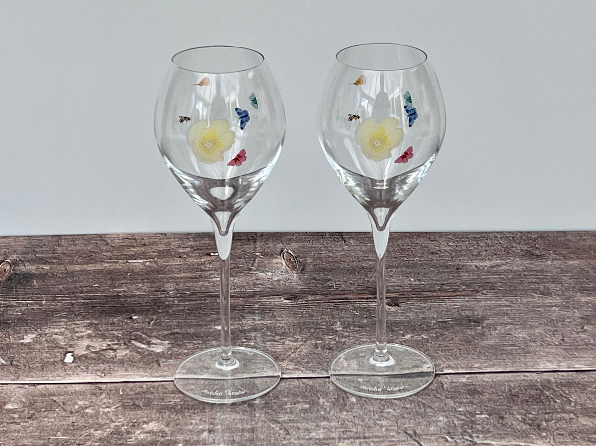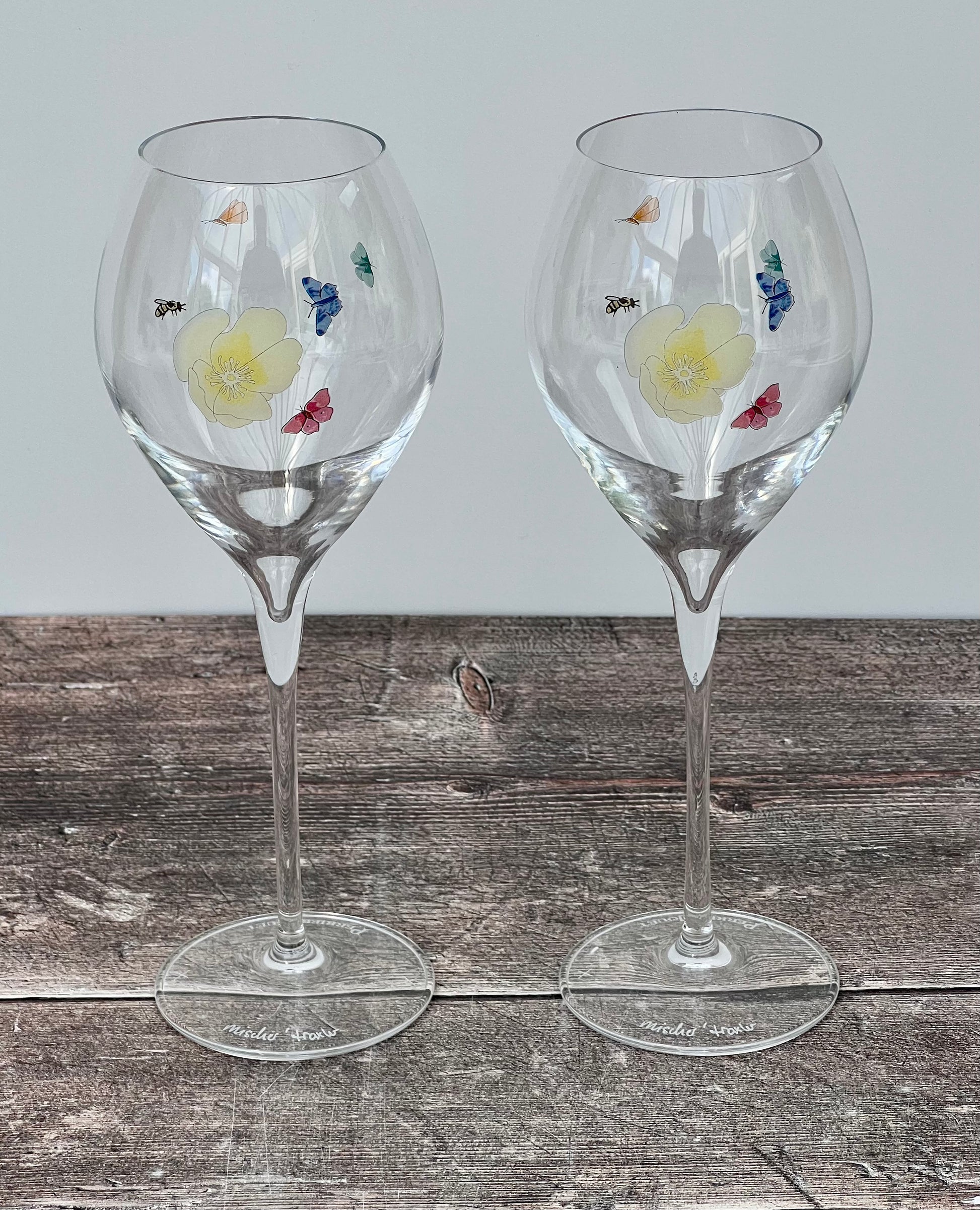 Pair of Perrier-Jouet Mischer Traxler Yellow Flower Champagne Glasses
