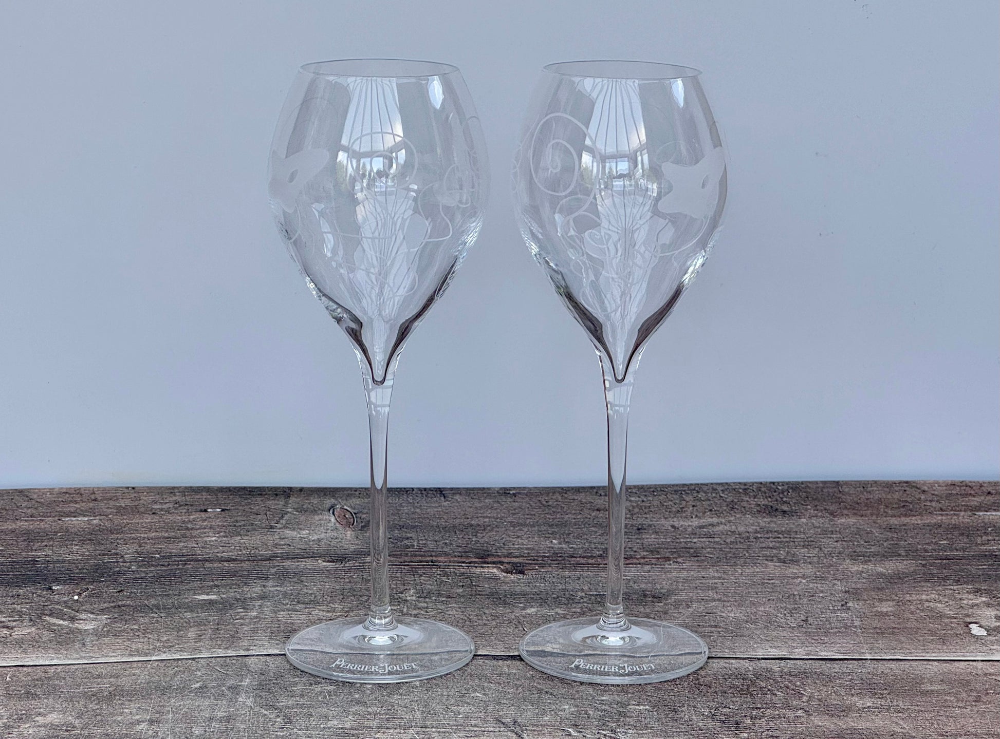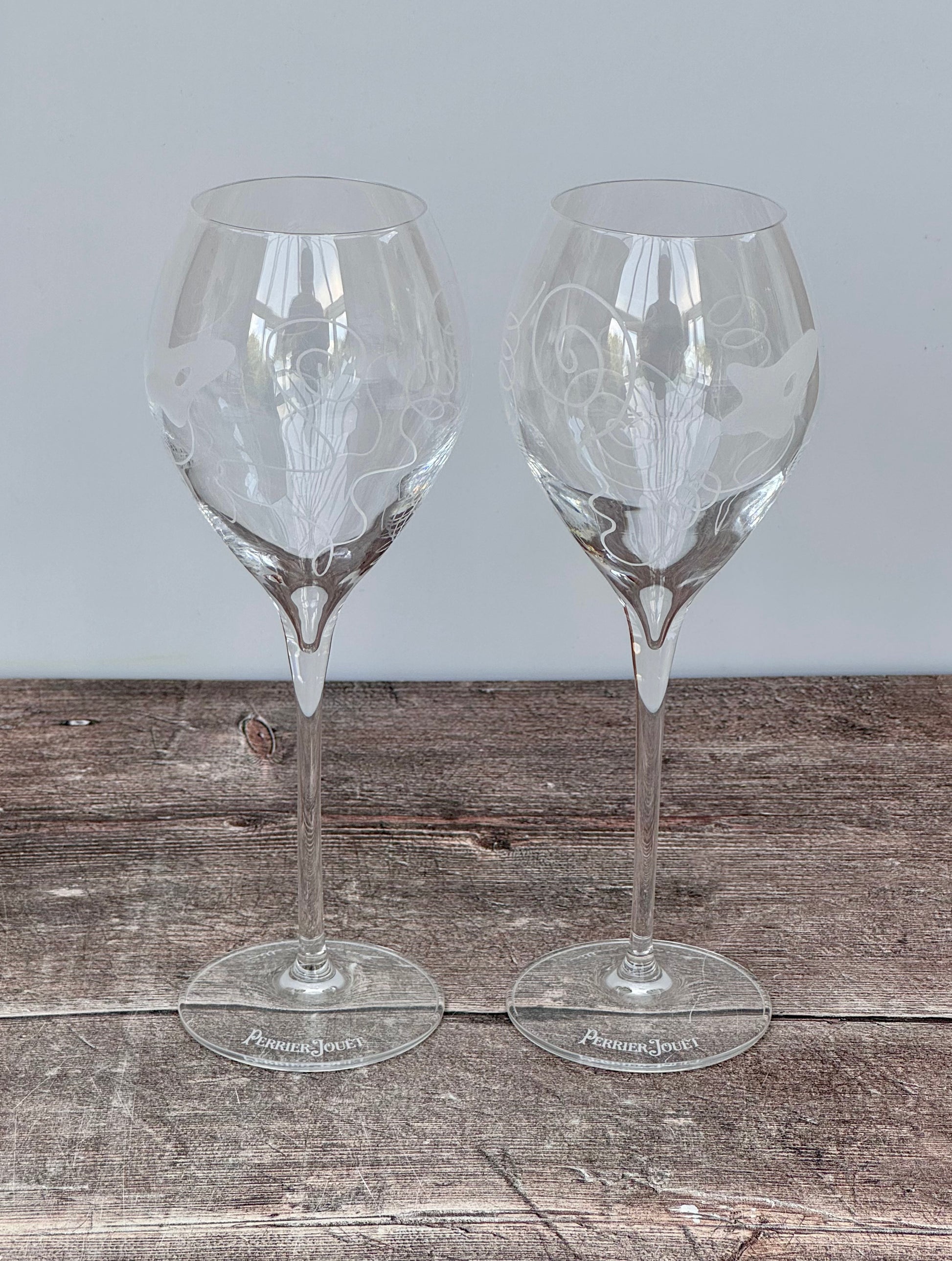 Pair of Perrier-Jouet Limited Edition Swirl Patterned Garance Vallee Champagne Glasses
