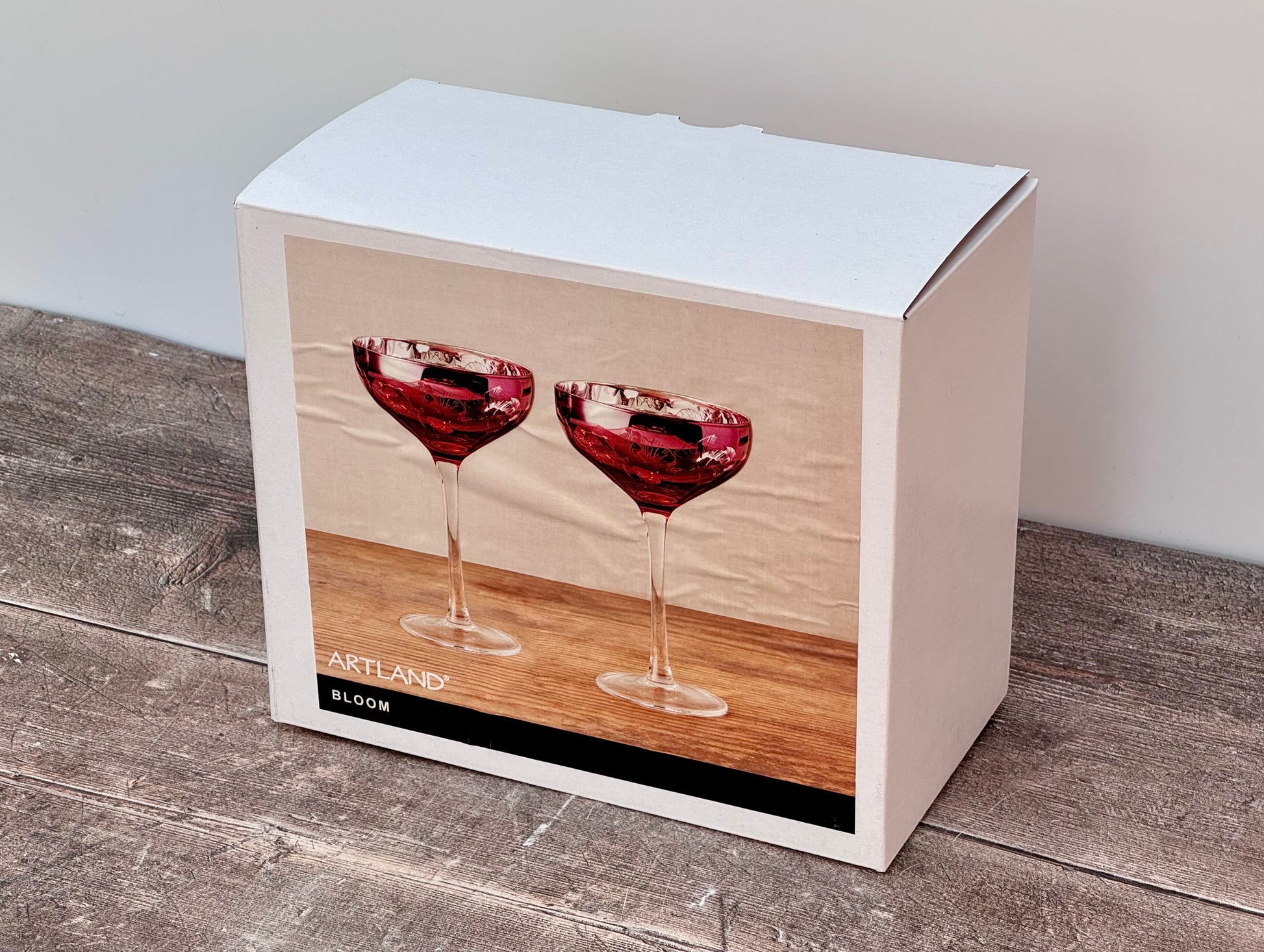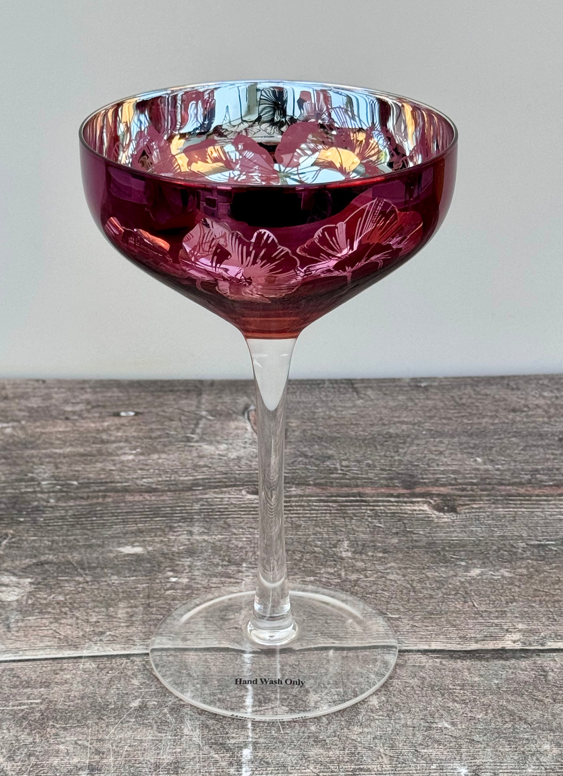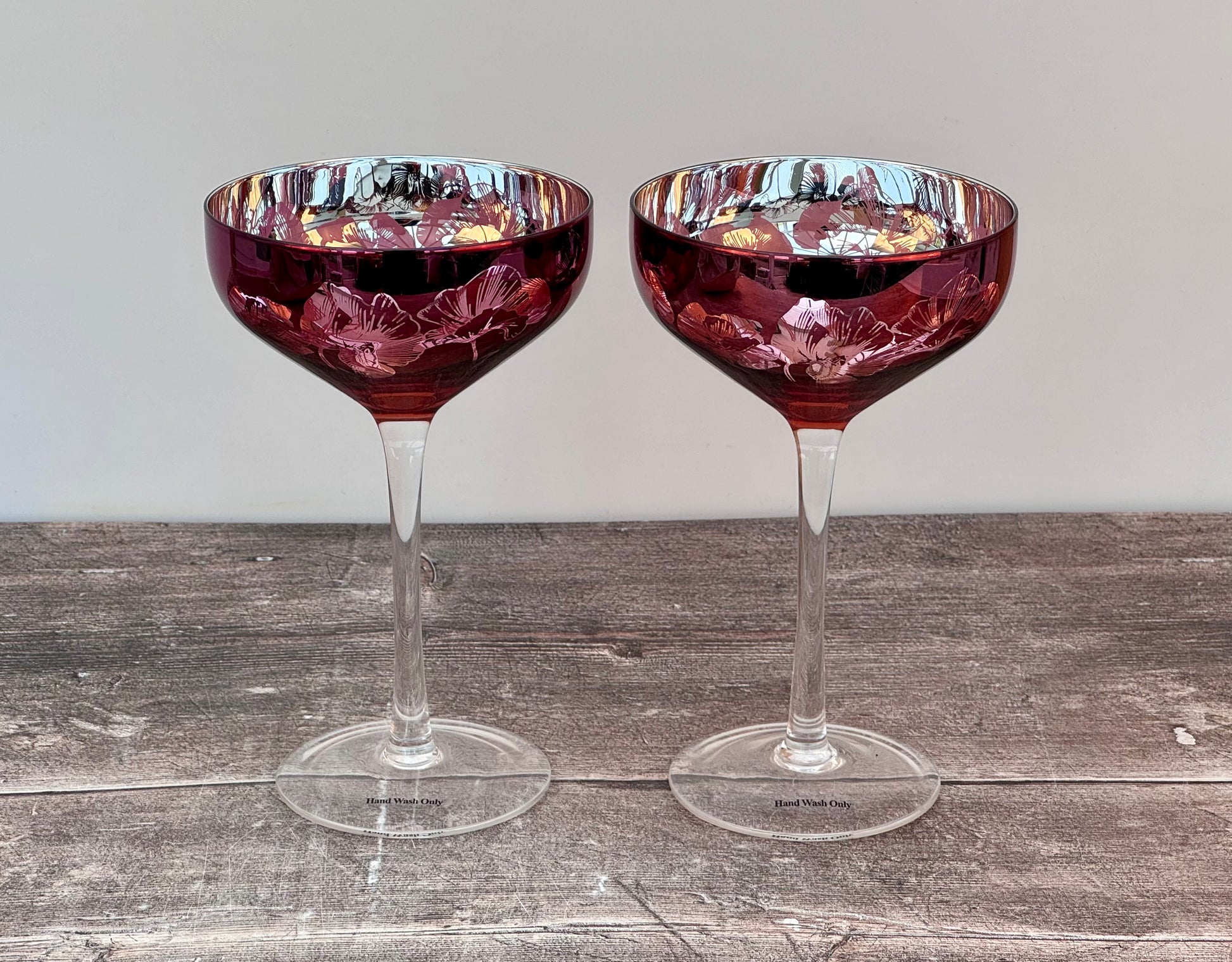 2 Pink Bloom Champagne/Cocktail Saucer Glasses