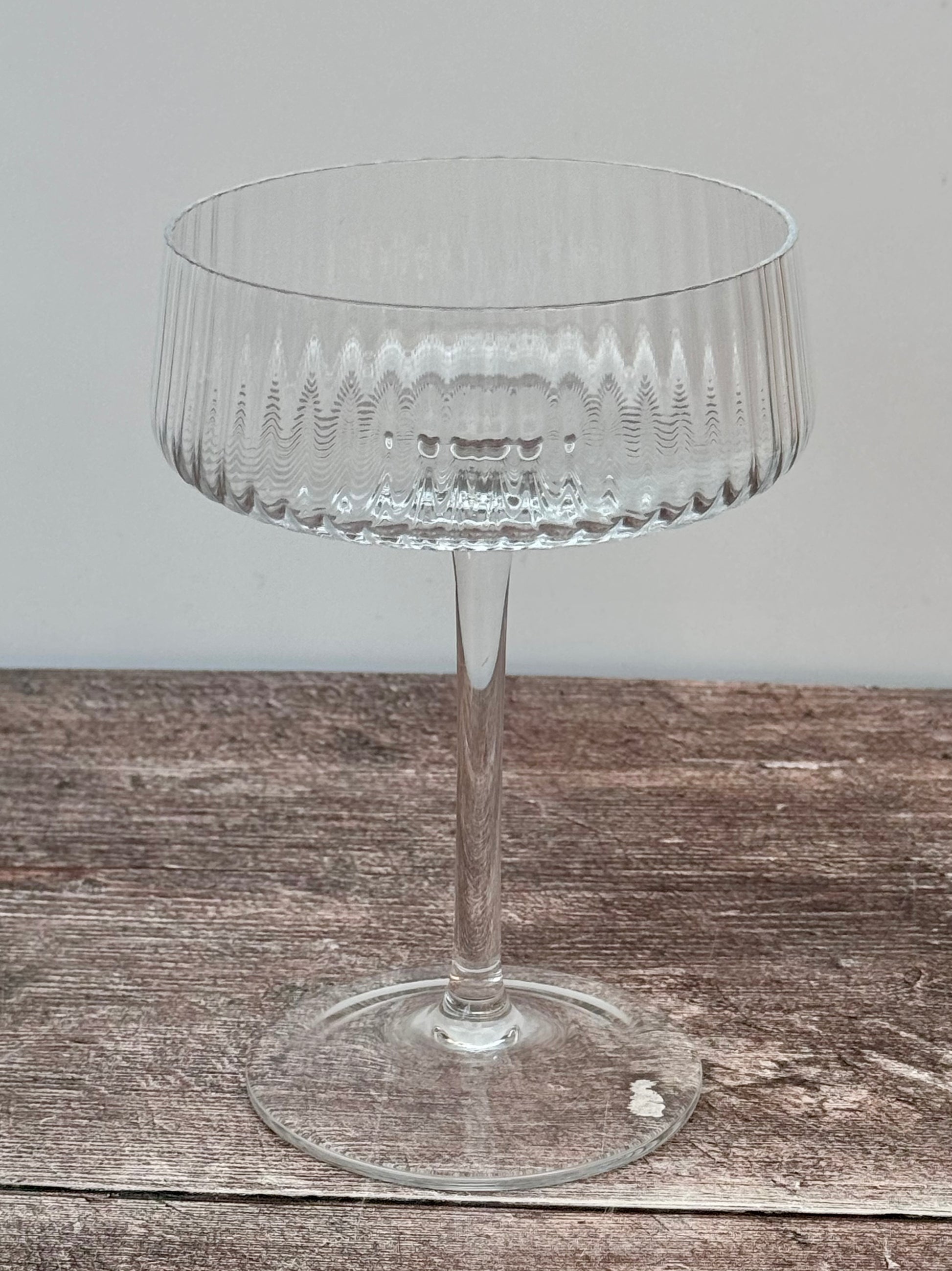 Set of 2 Ribbed/Linear Empire Champagne/Cocktail Saucer/Glasses