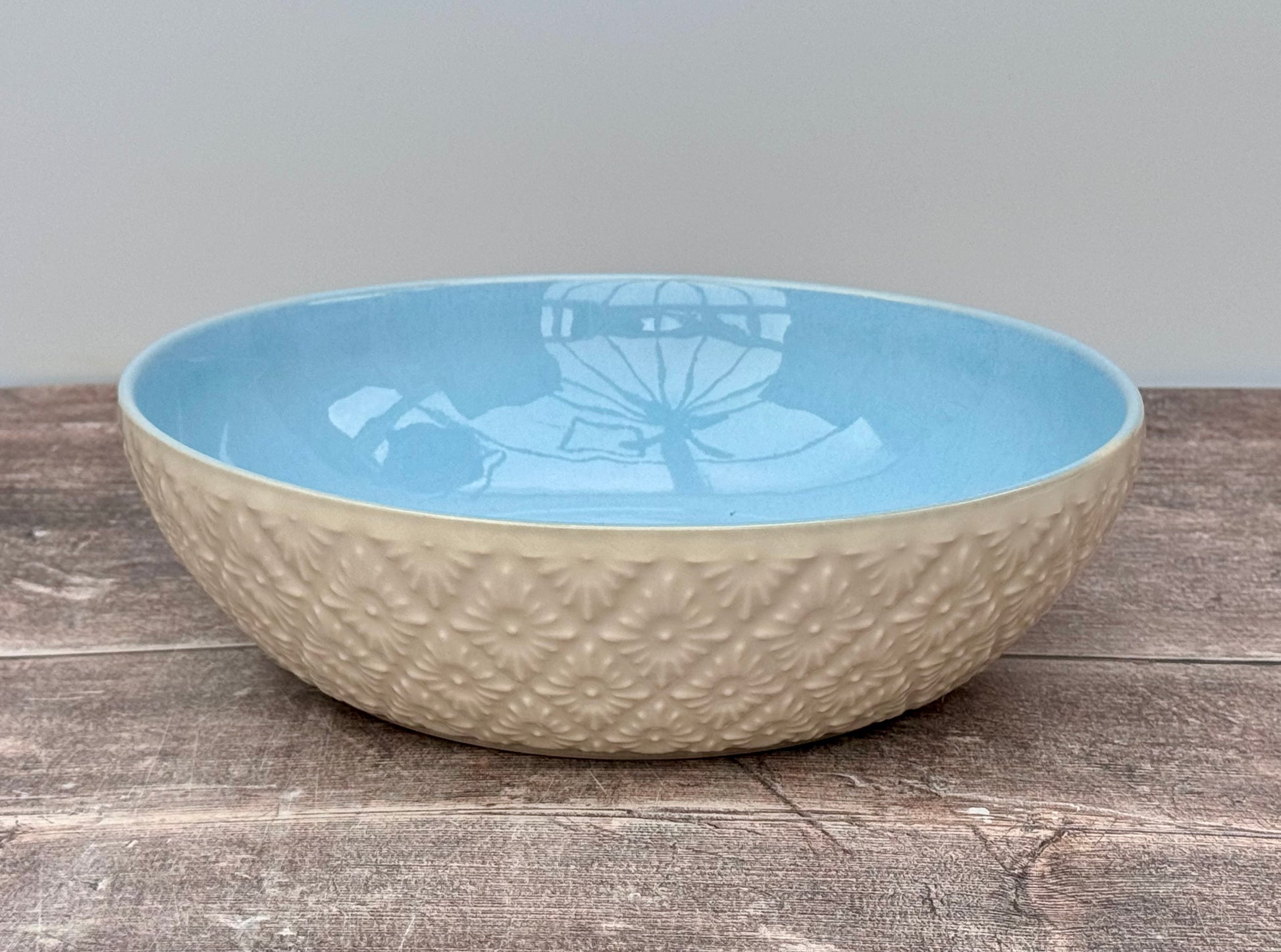 Blue and Cream Diamond Patterned Pasta/Serving Bowl, 22cm