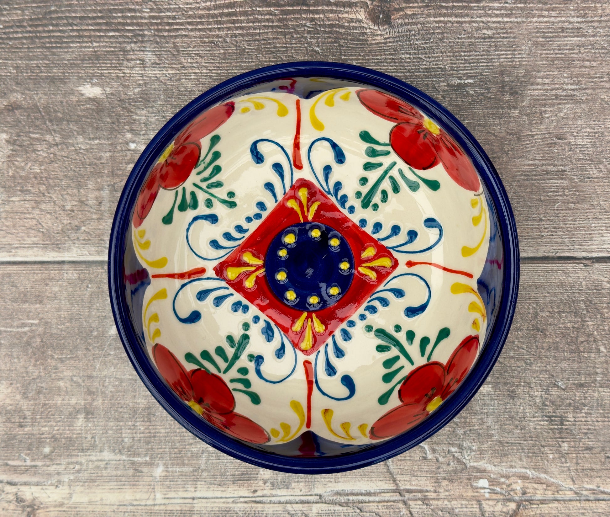 Blue, Red and Yellow Flower Handpainted Bowl, 15cm