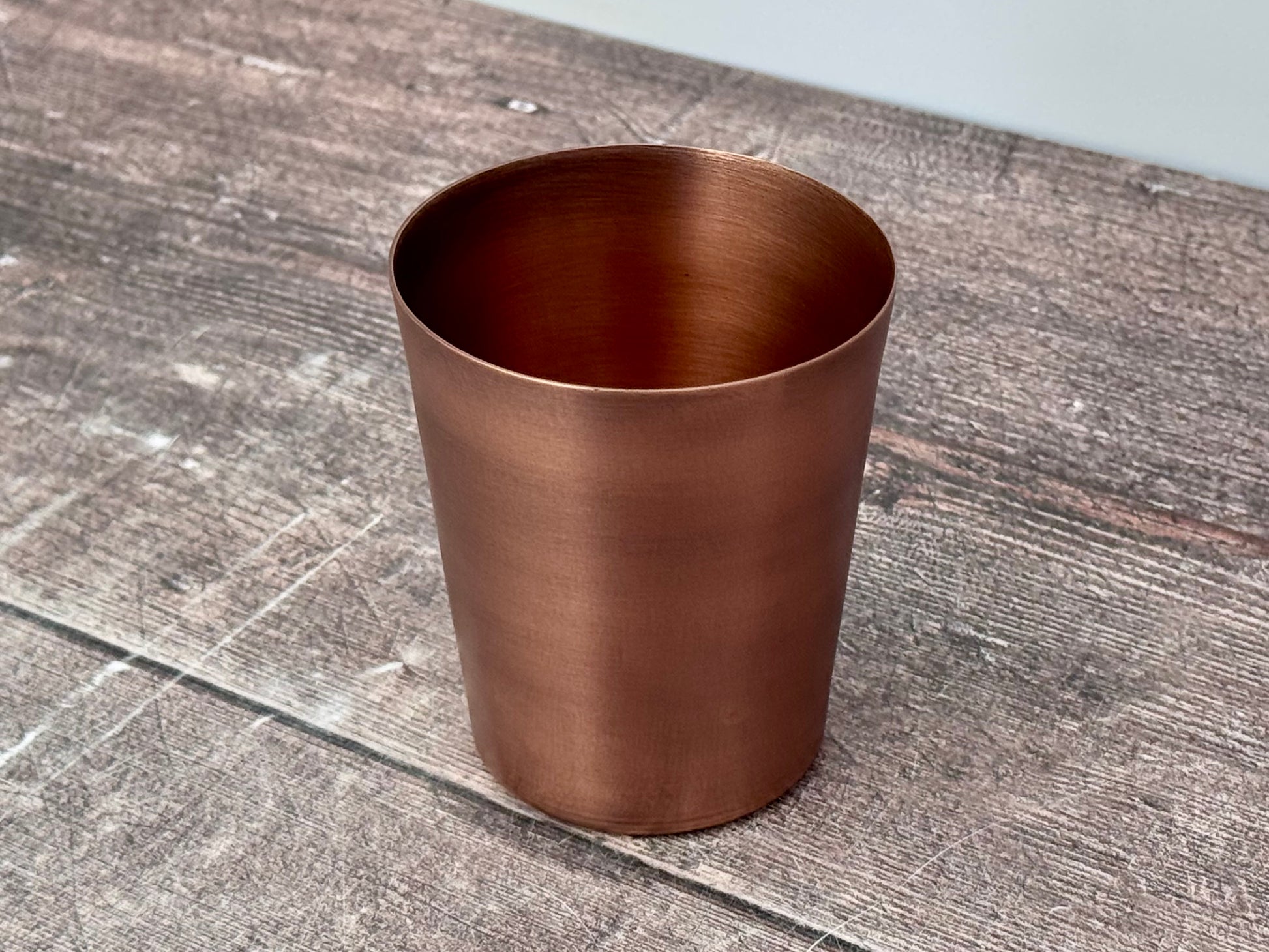 A copper tumbler.