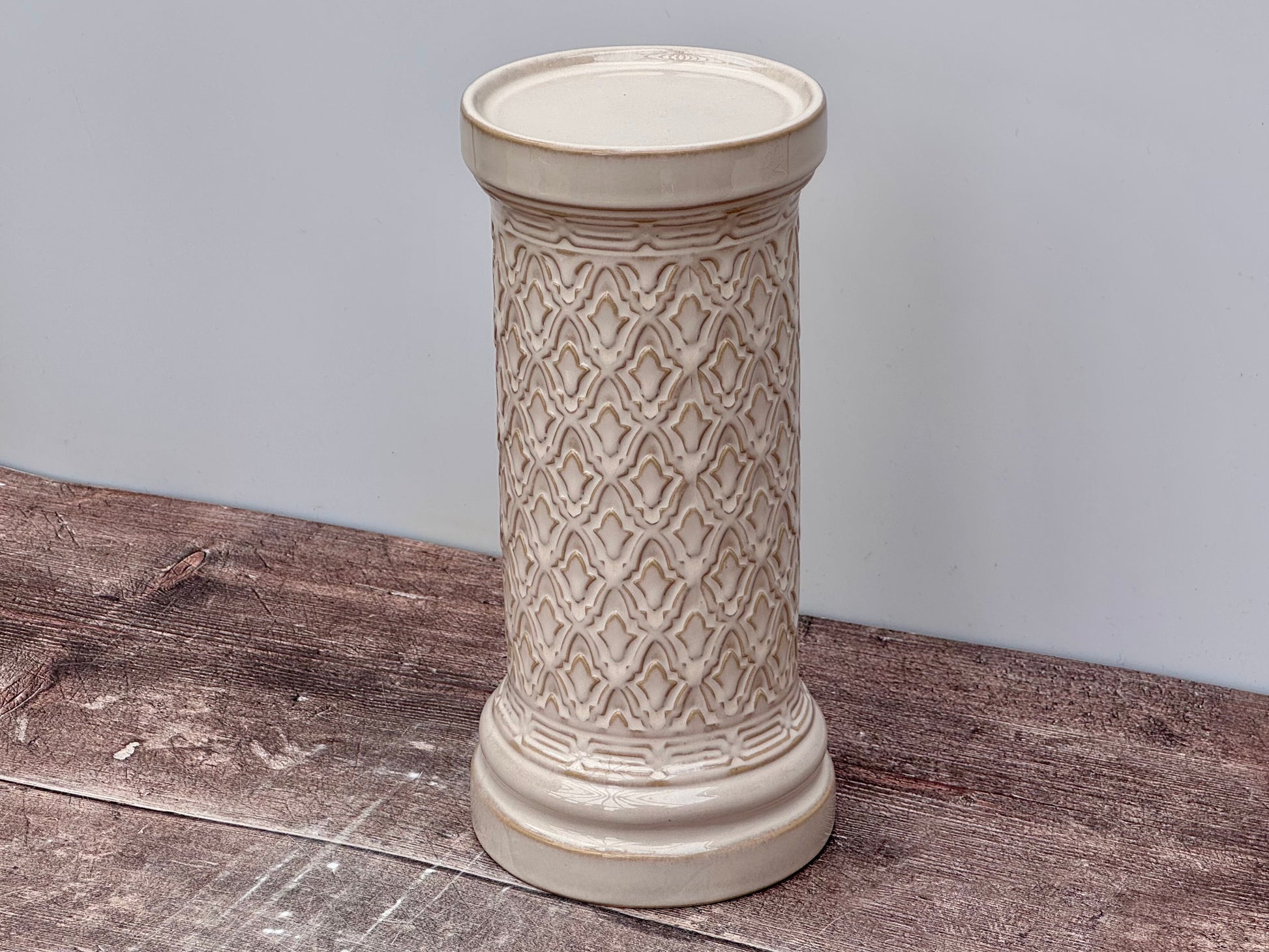 Cream Patterned Pillar Candle Holder, 25.5cm