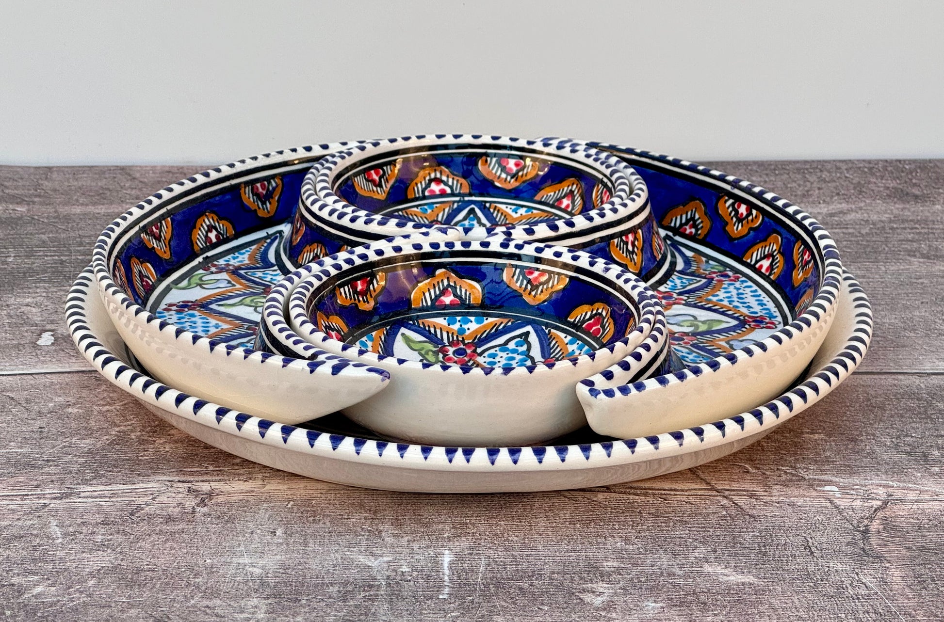 With a beautiful dark blue pattern design, this set of 5 serving dishes is perfect for serving snacks and dips.