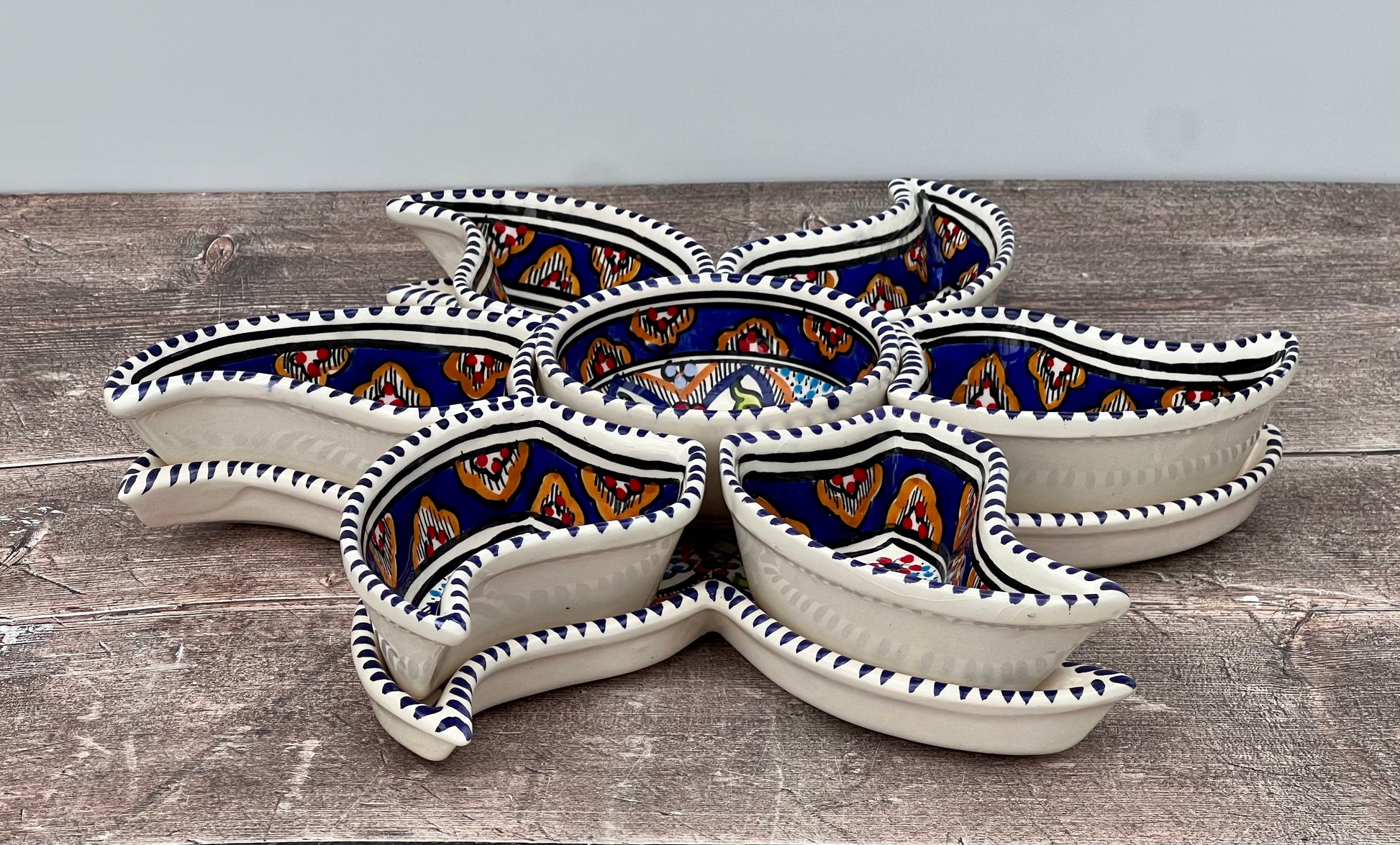 With a beautiful dark blue pattern design, this set of 7 serving dishes is perfect for serving snacks and dips.