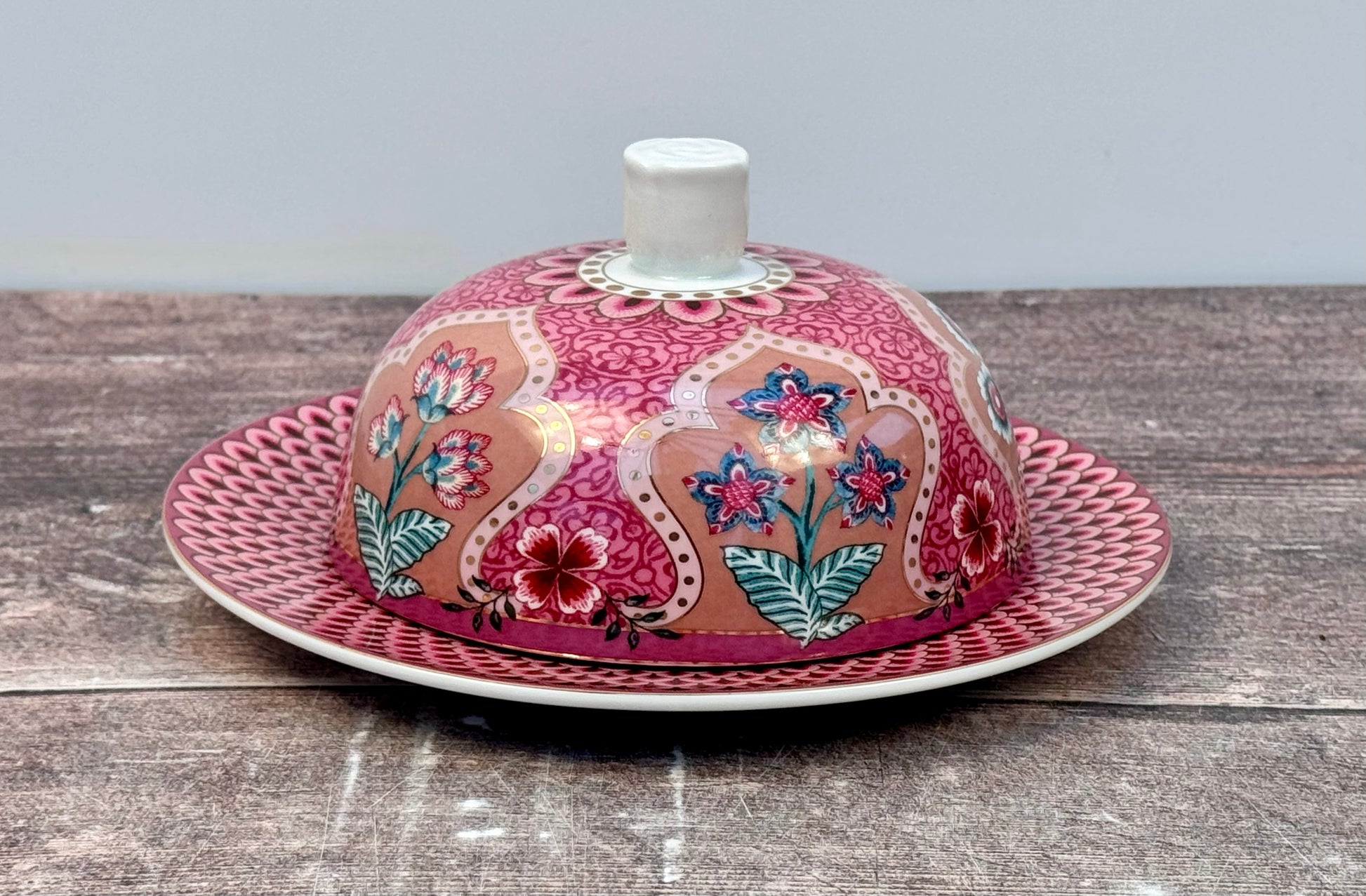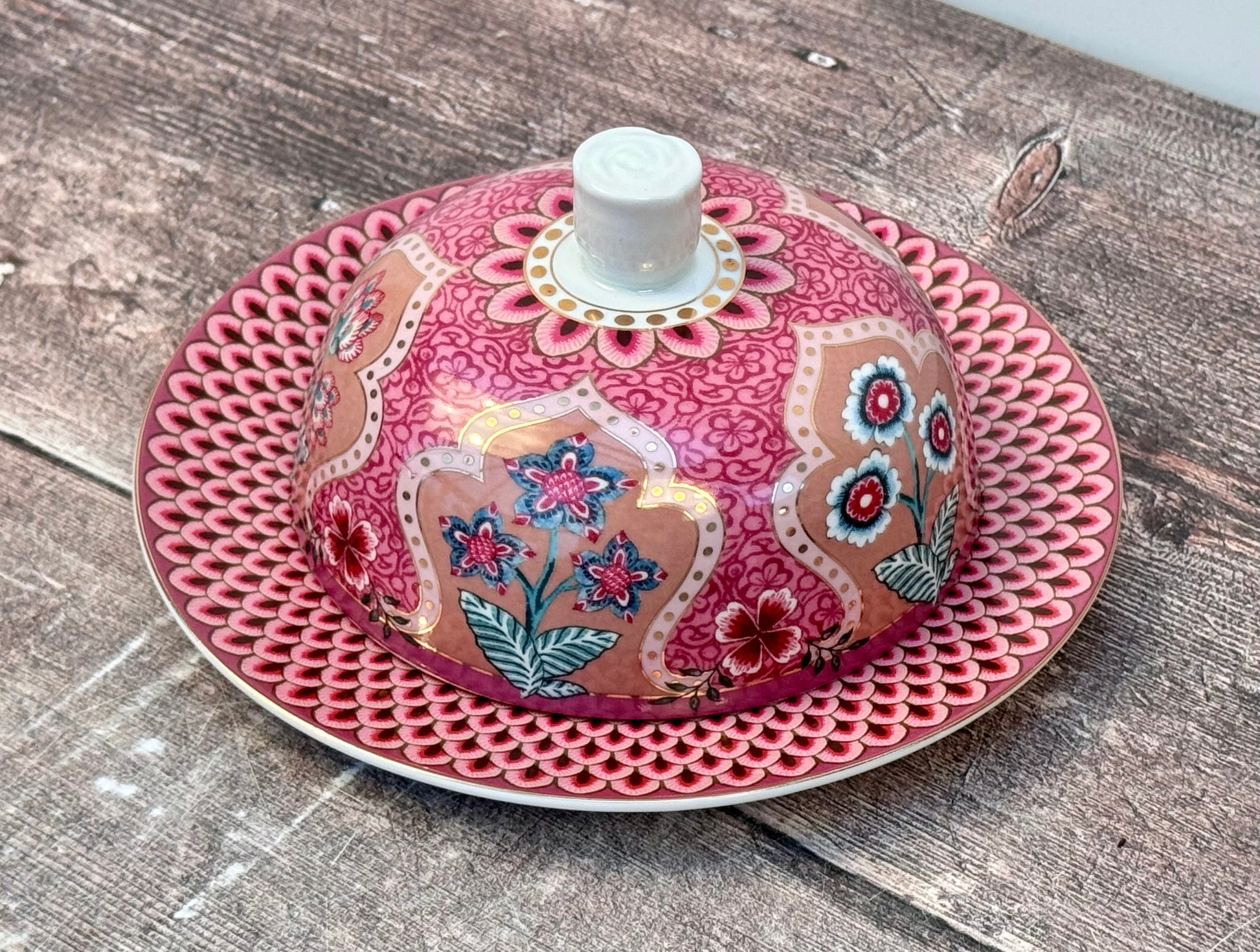Dark Pink Patterned Round Butter Dish, 17cm