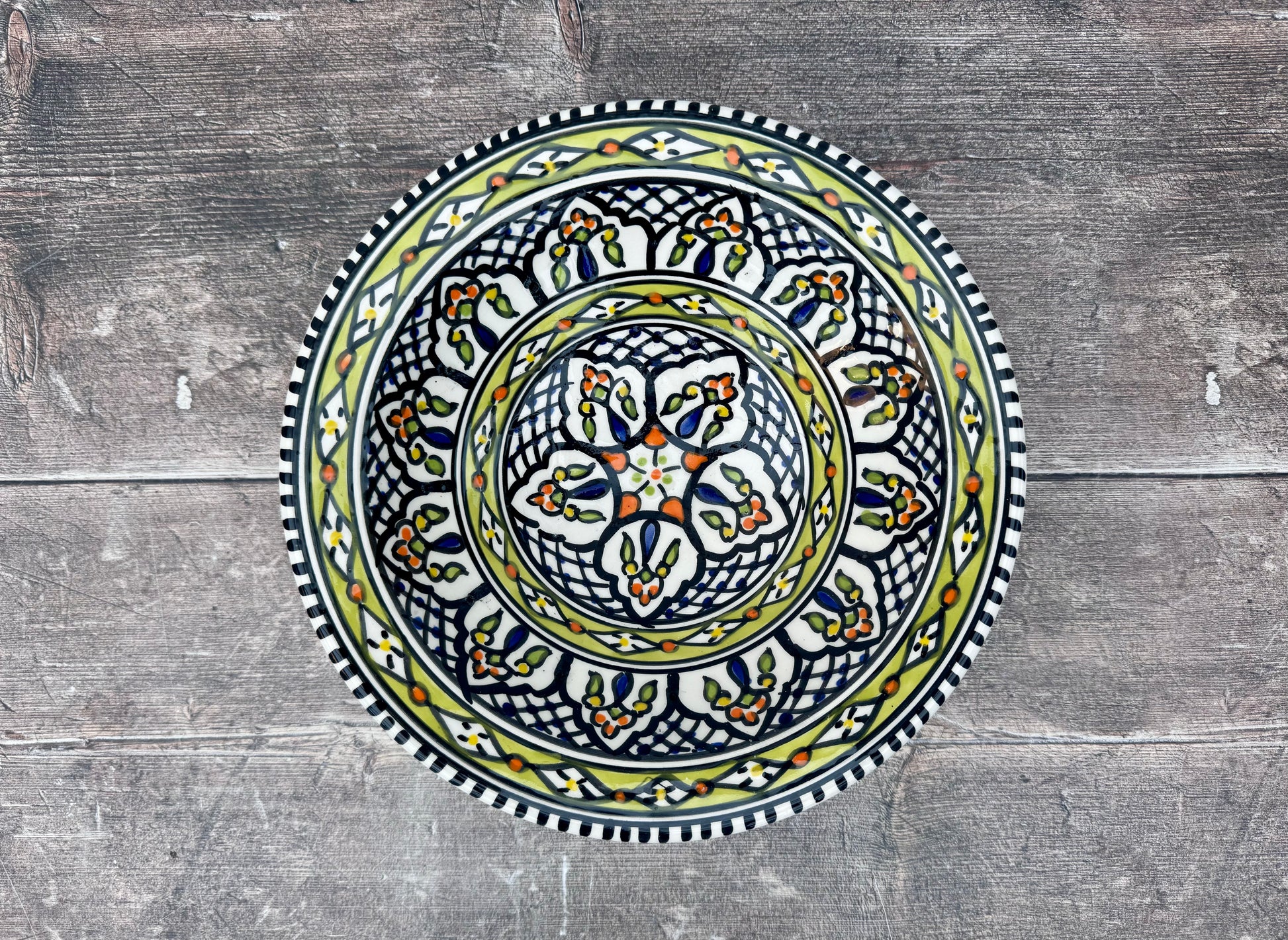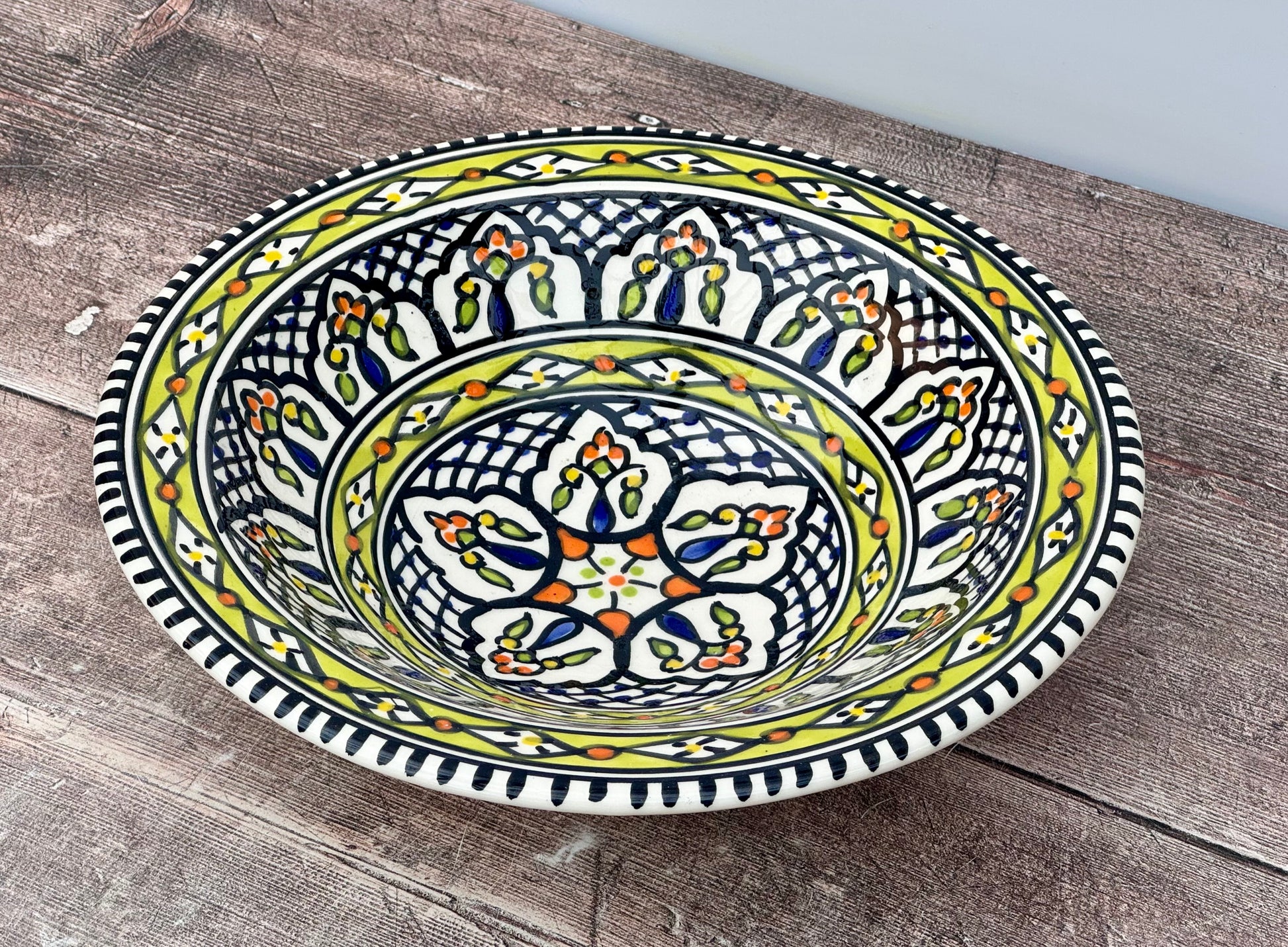 Green Patterned Bowl with Flat Rim, 24cm
