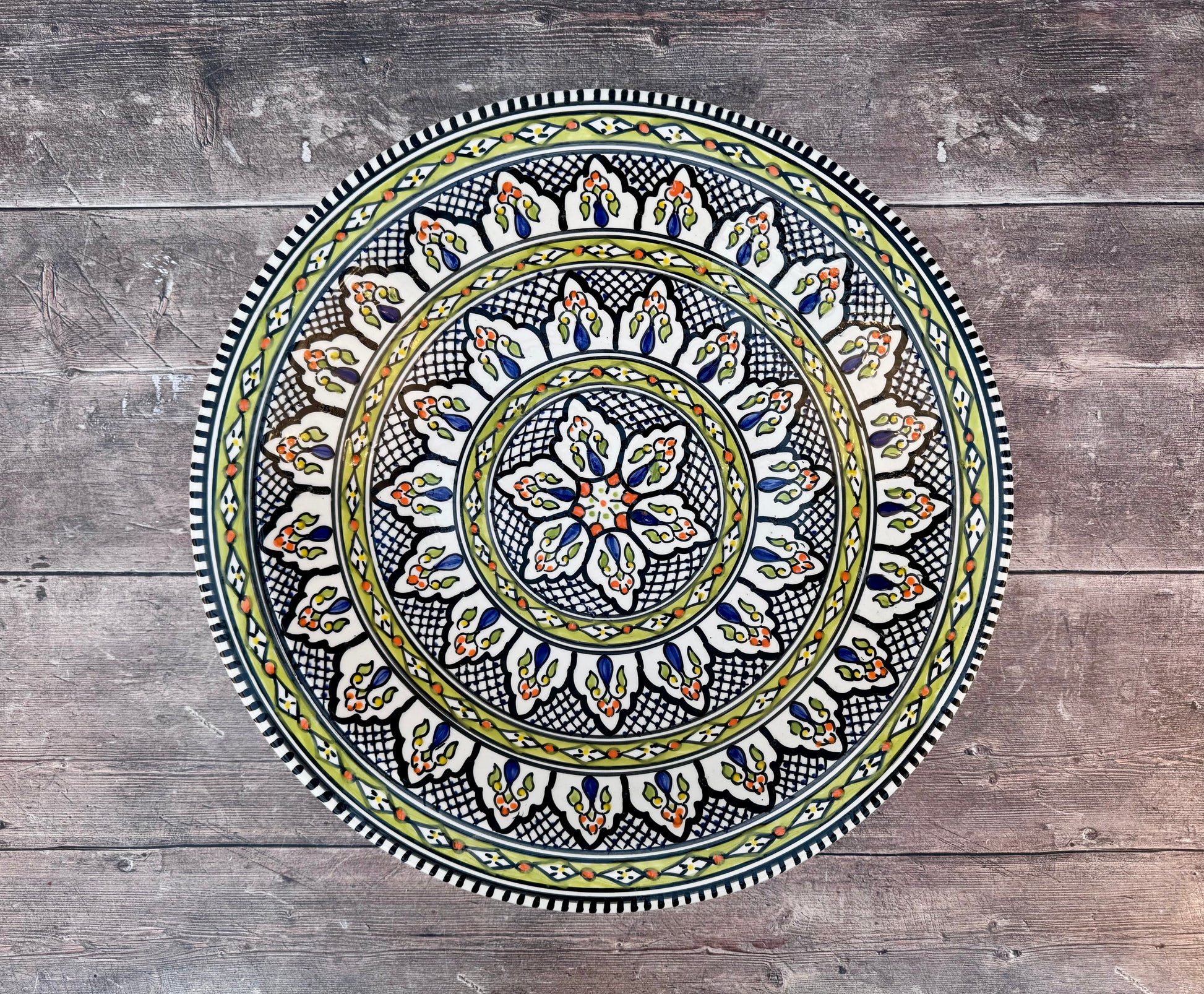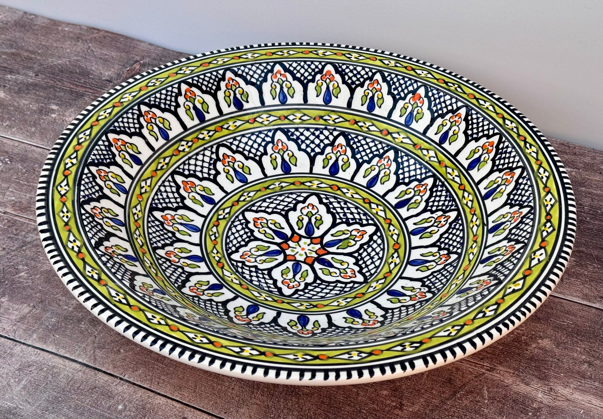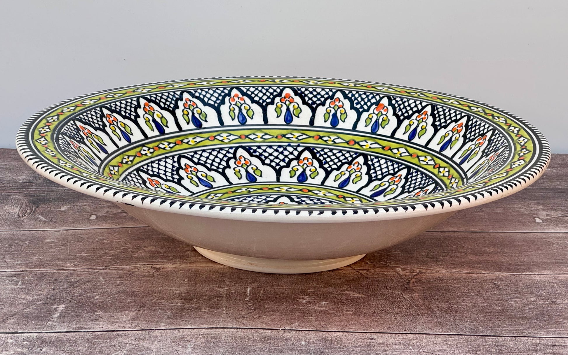 Green Patterned Bowl with Flat Rim, 43cm