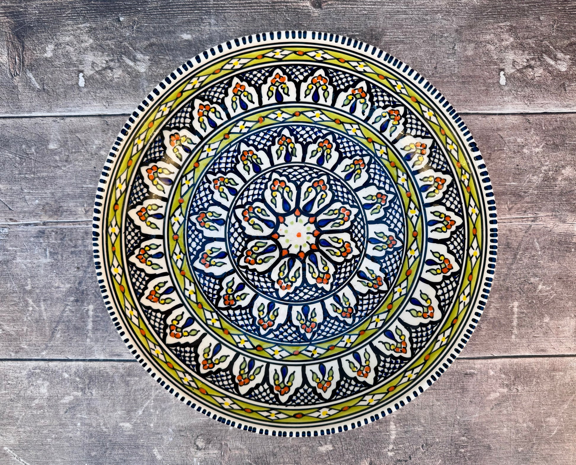 A striking hand painted bowl. The smooth rim of the dish makes it perfect for serving food.