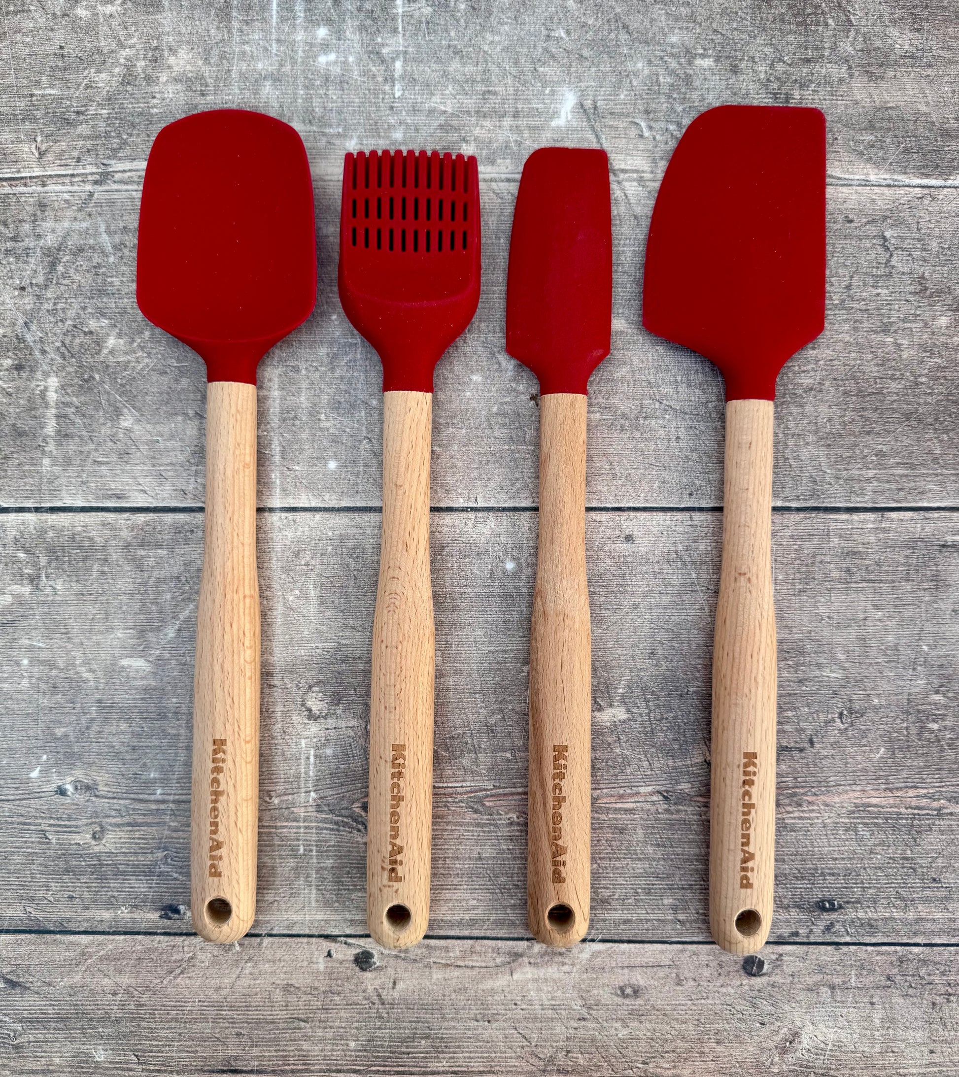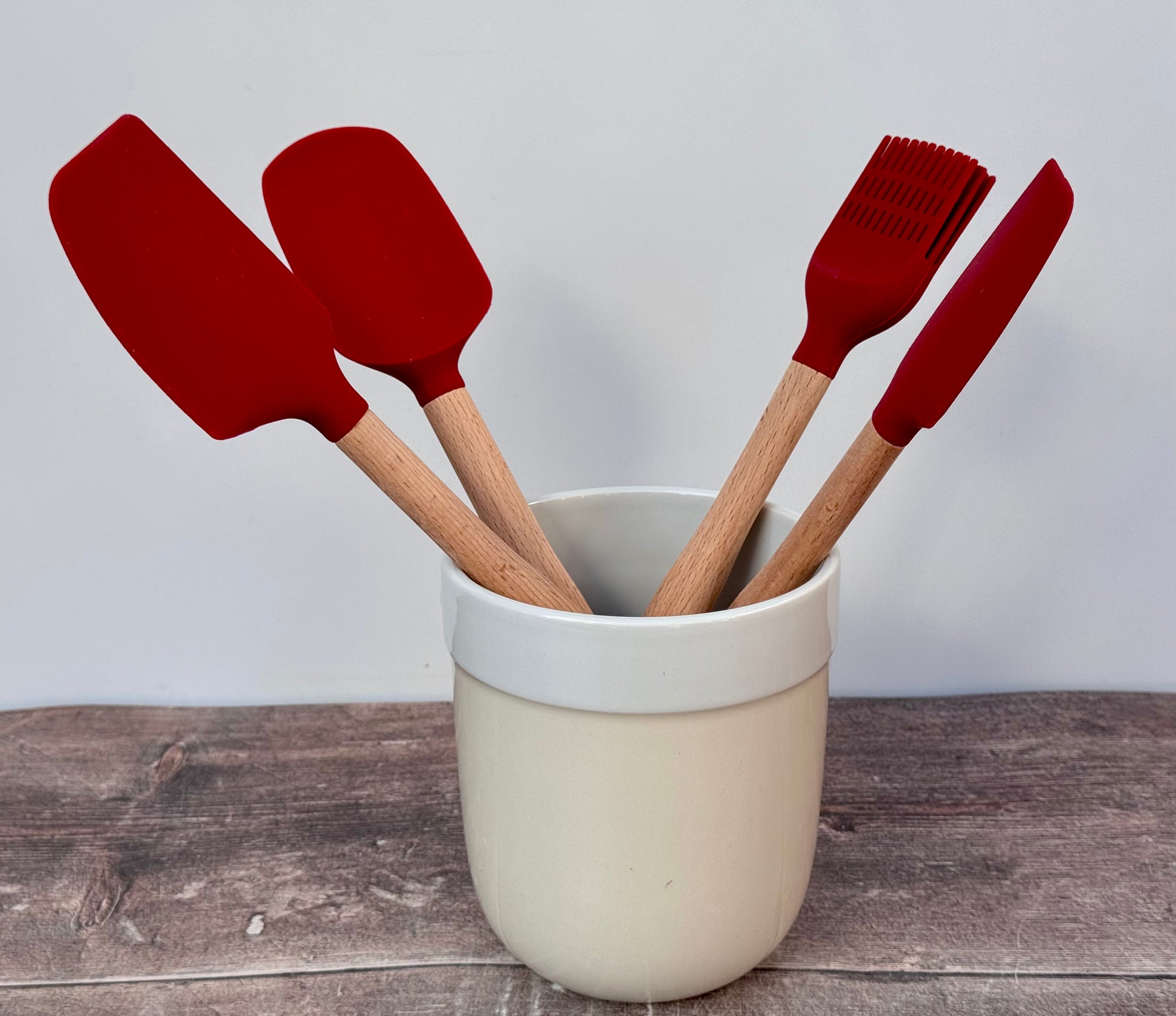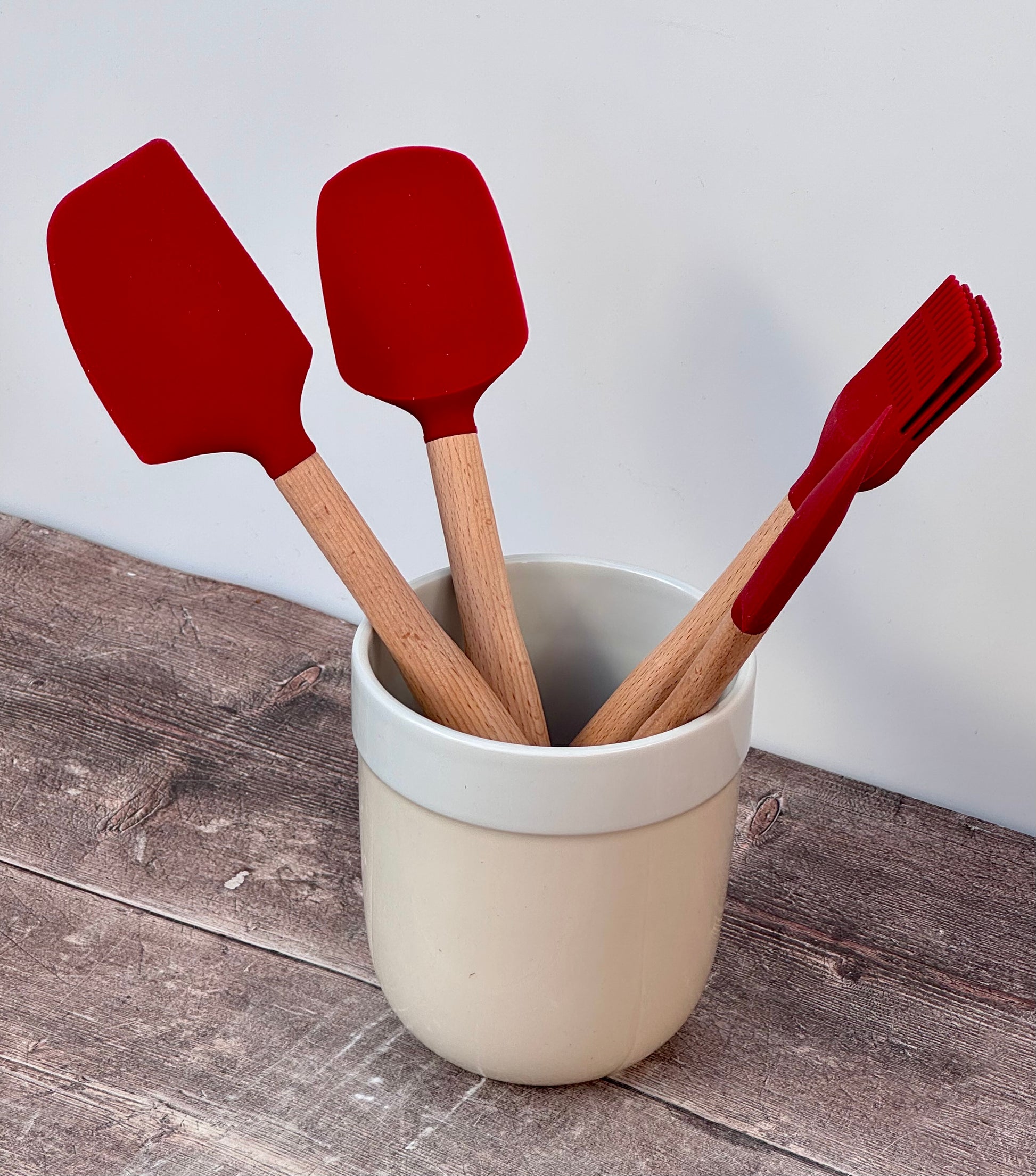 This Kitchenaid utensil jar comes with 4 utensils in red.