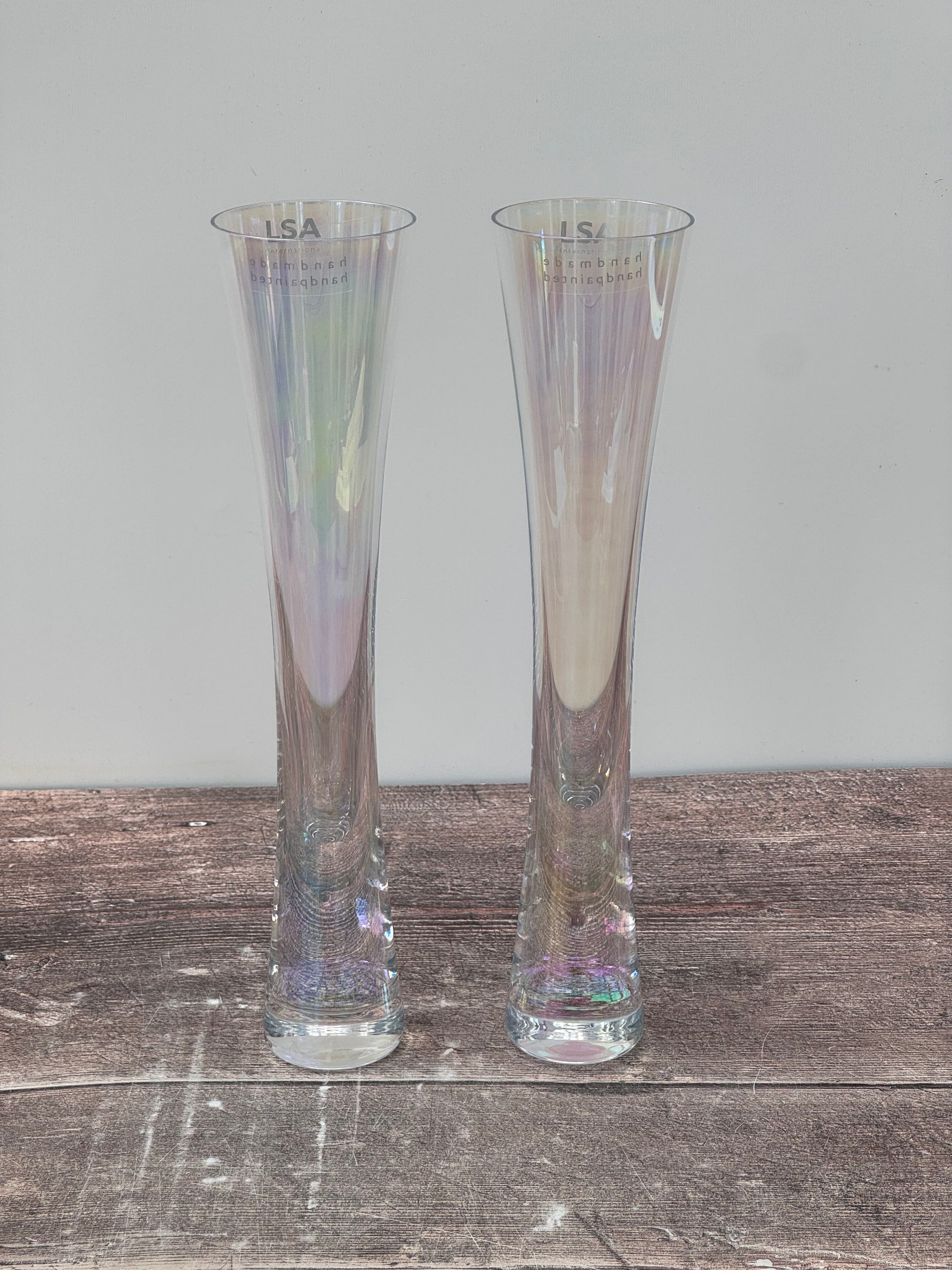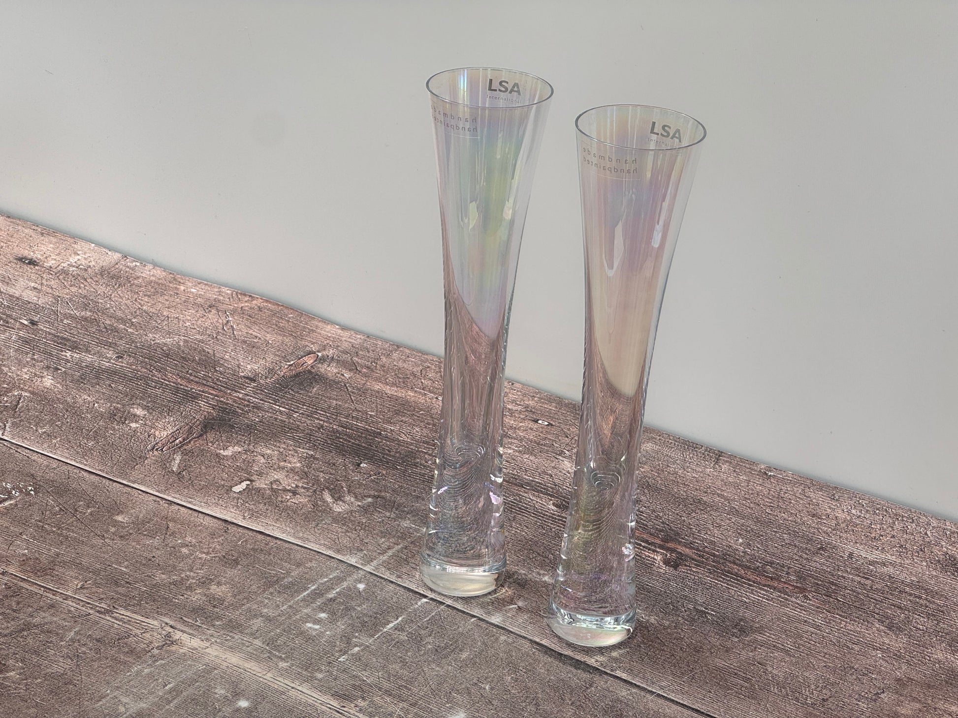 Mouth-blown champagne flutes from a single piece of glass with a hand-painted subtle mother of Pearl lustre. The weighty stems and curved silhouette epitomise quality and modern design - an ideal set for both celebrations and gift occasions.