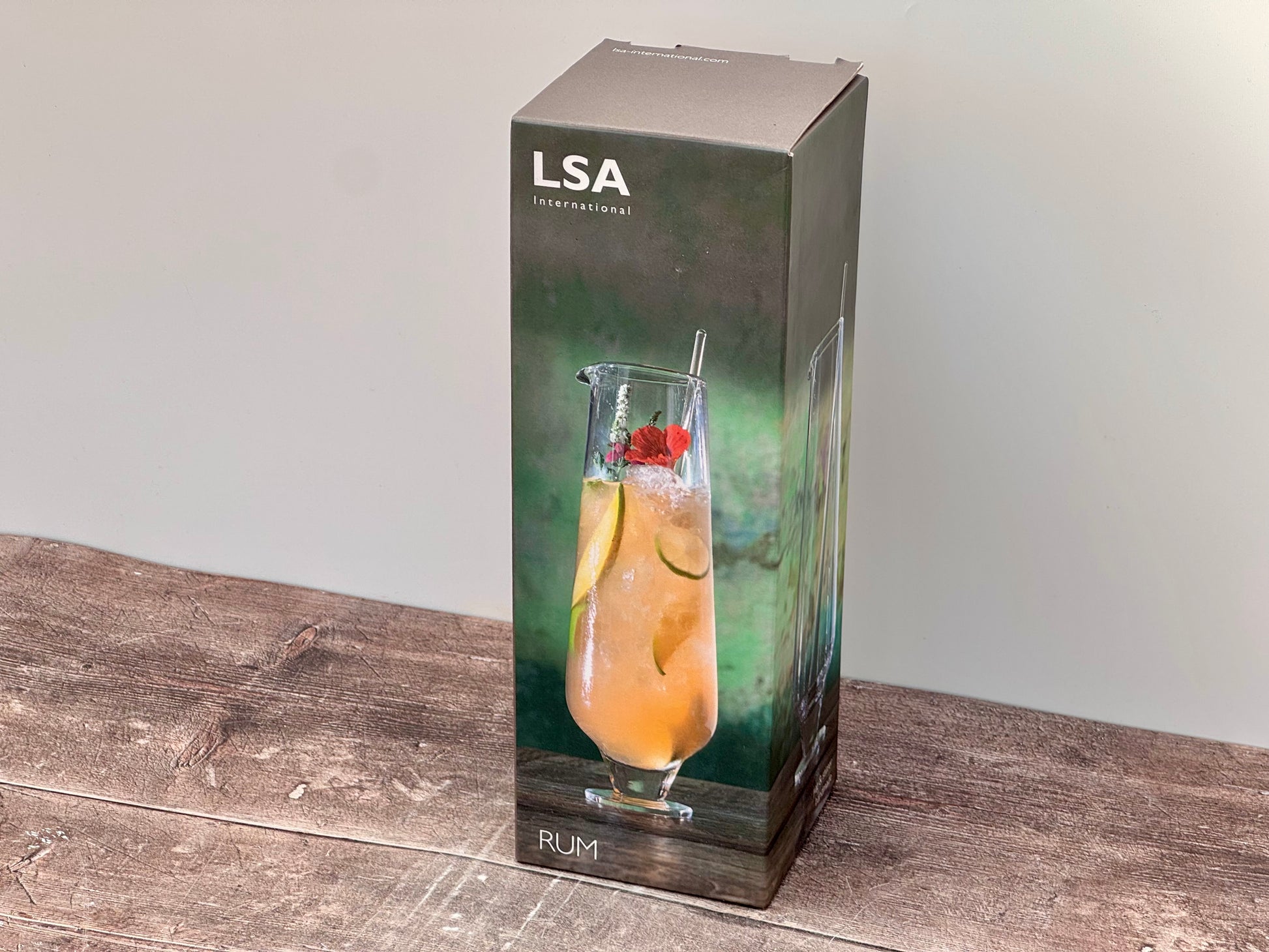 This mouthblown set includes a jug and stirrer. The jug has a short conical stems and disc-shaped foot. Provided with a long stirrer, this modern jug is designed for mixing and pouring cocktails, punch and long drinks.
