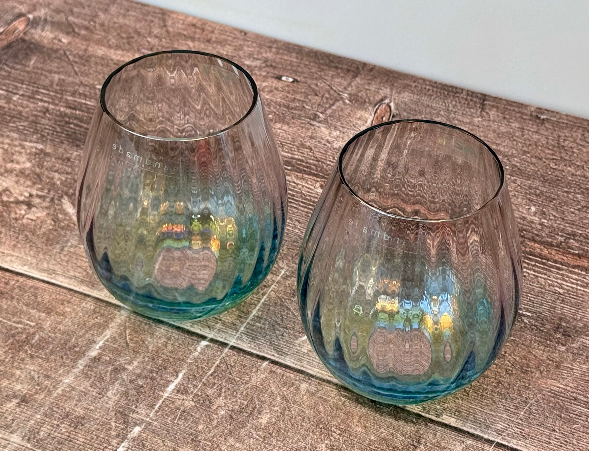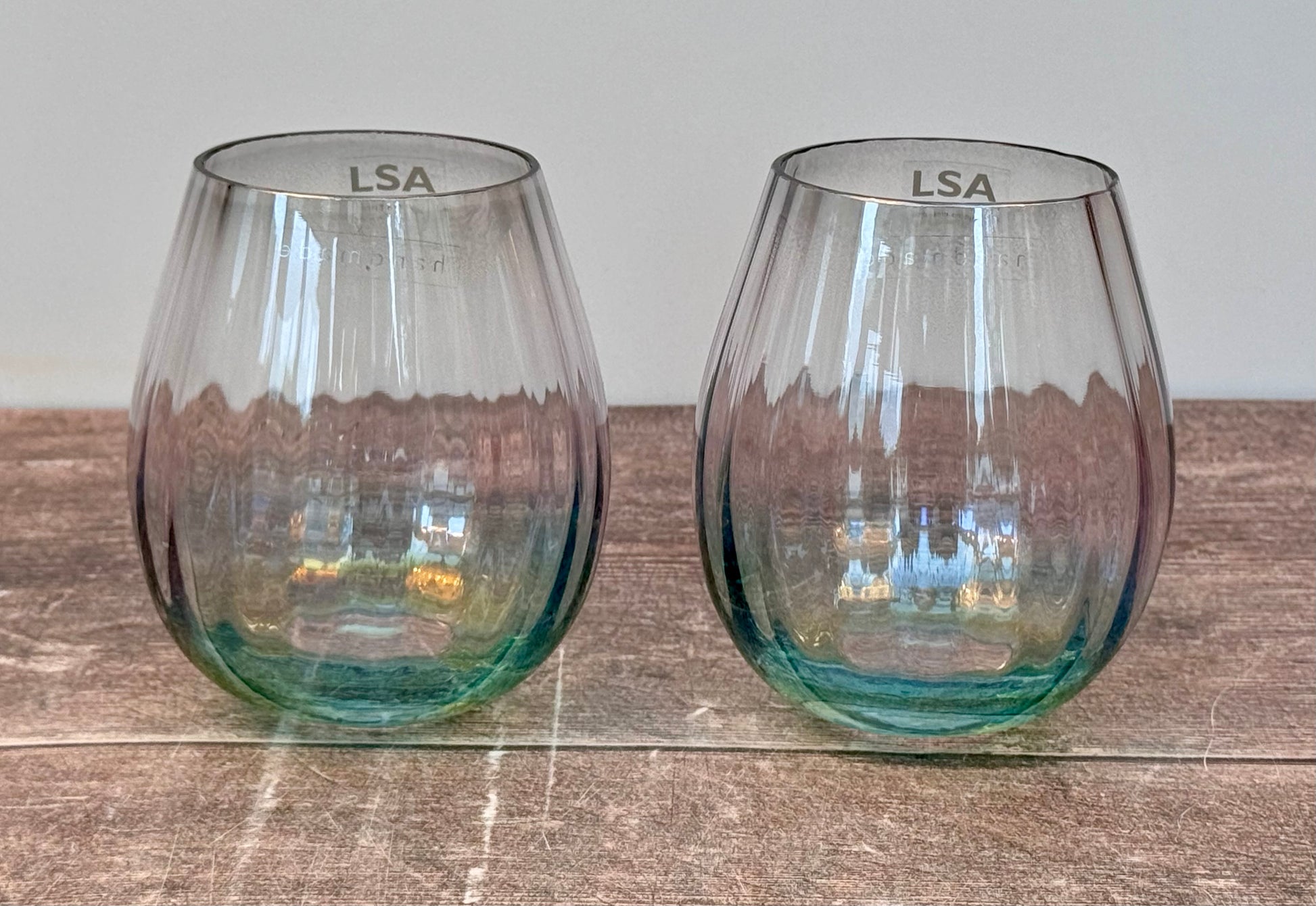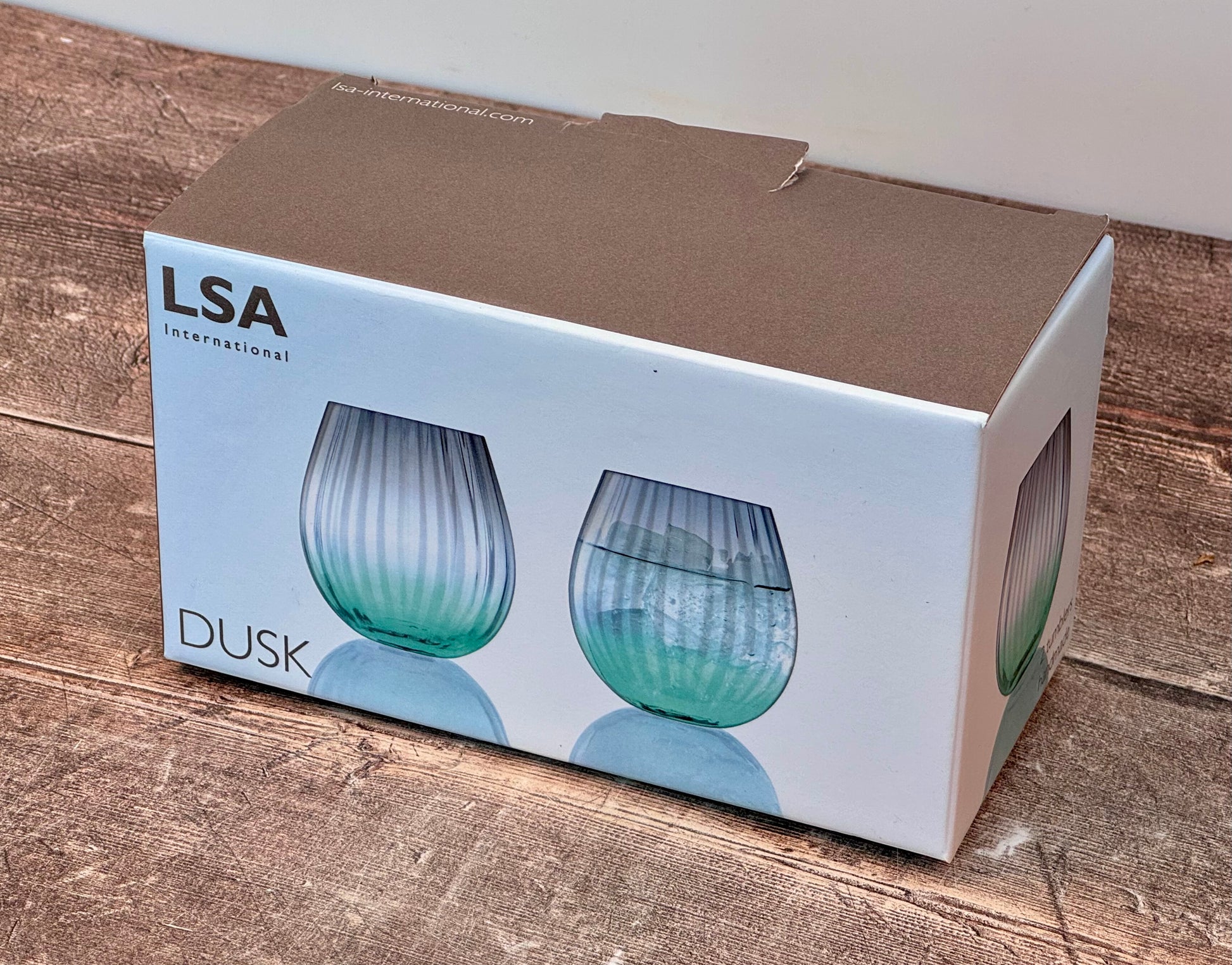 A pair of hand-decorated tumblers inspired by delicate colours that fade into the sky as the sun sets at dusk.