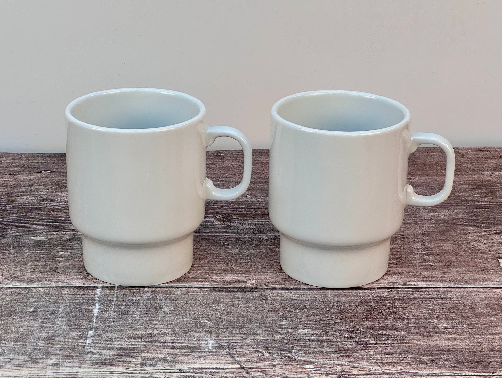 From LSA, this is a set of two porcelain cappuccino cups with a stepped, stackable shape in white.