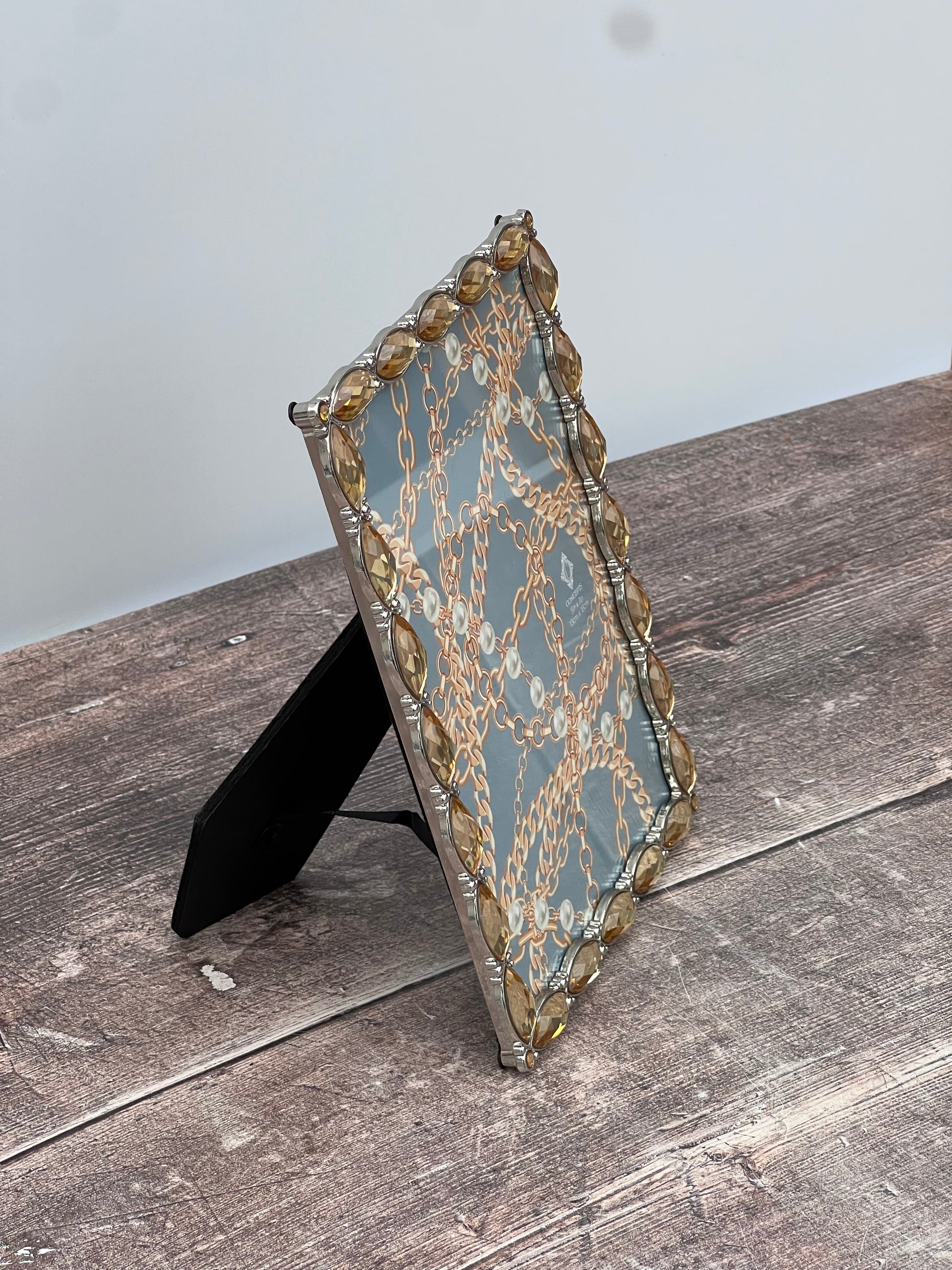 This photo frame features a pale amber coloured ornate jewel design to add a touch of glamour and sparkle.