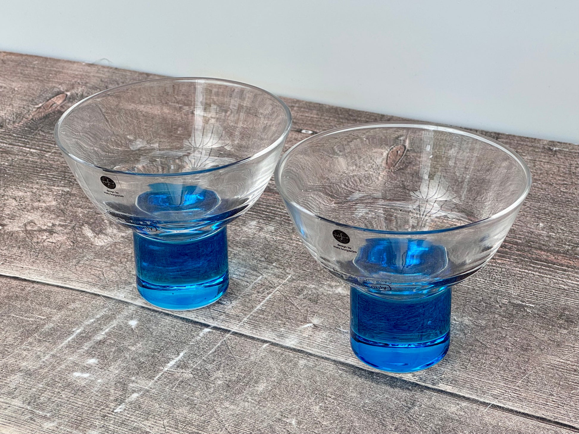 With a blue weighted footed base, these glasses will add a striking addition to any table or bar.
