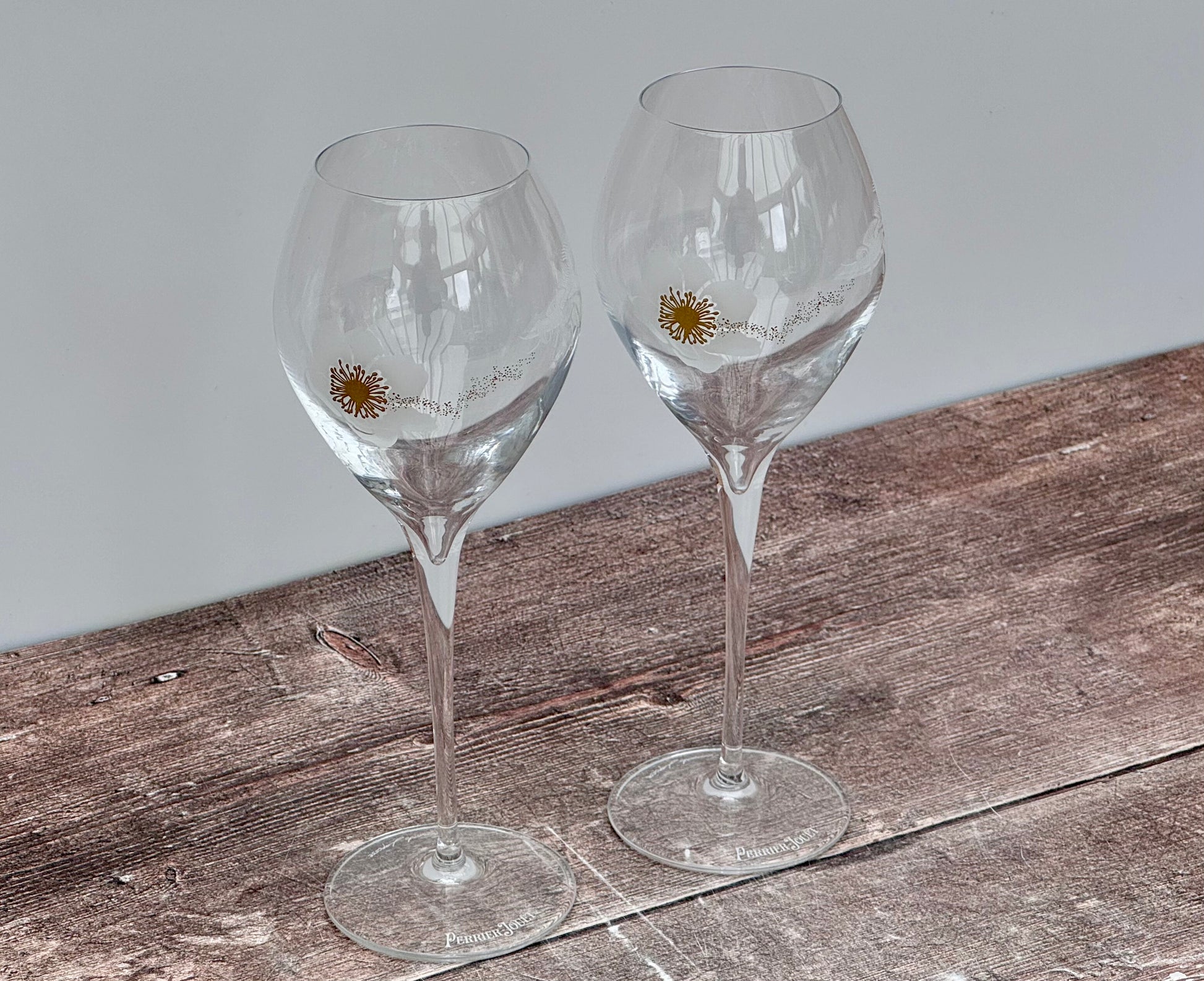Pair of Perrier-Jouet Fernando Laposse White Bee Champagne Glasses