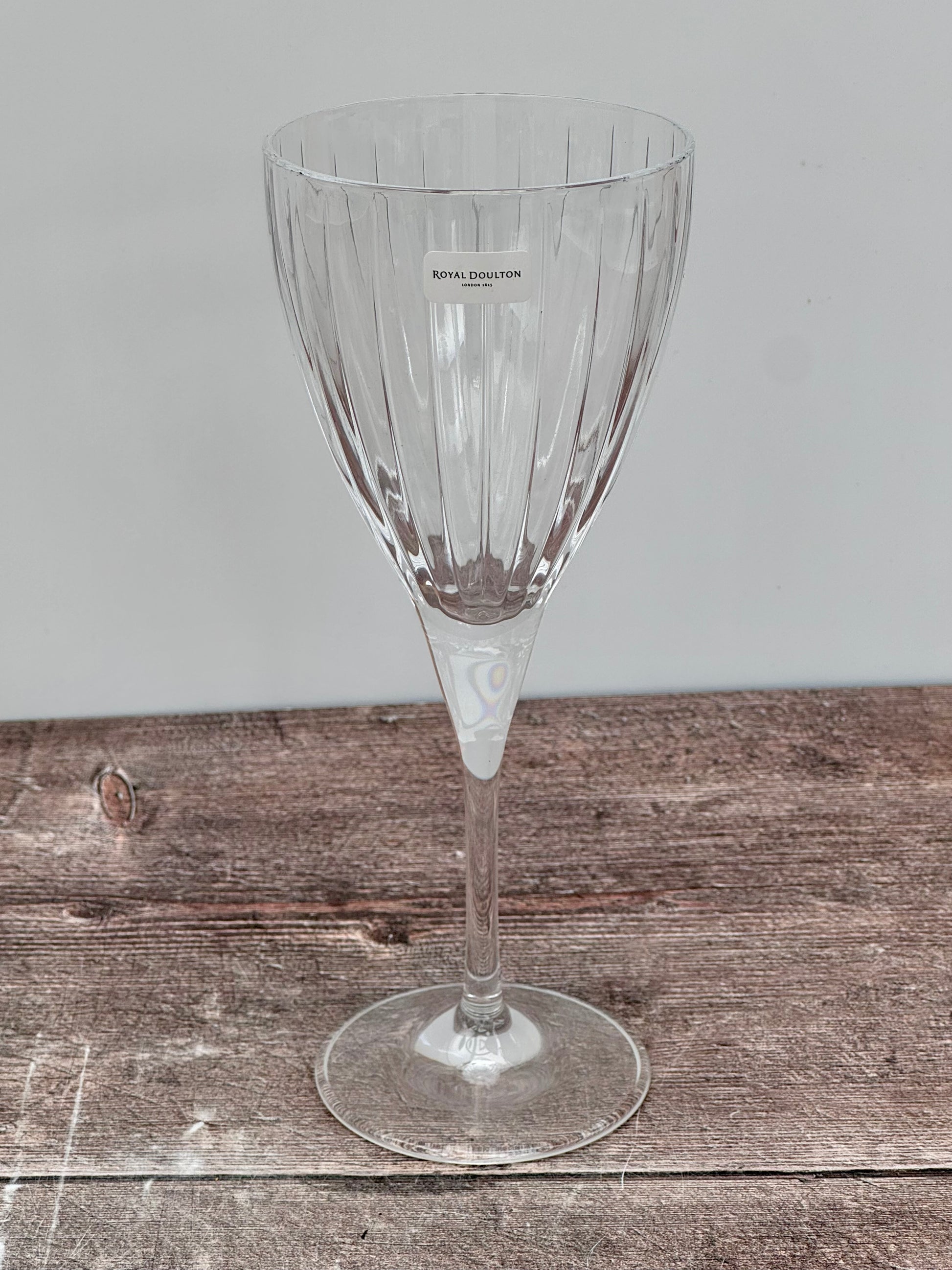 This set of wine glasses by Royal Doulton are made from crystal glass and have a linear design.