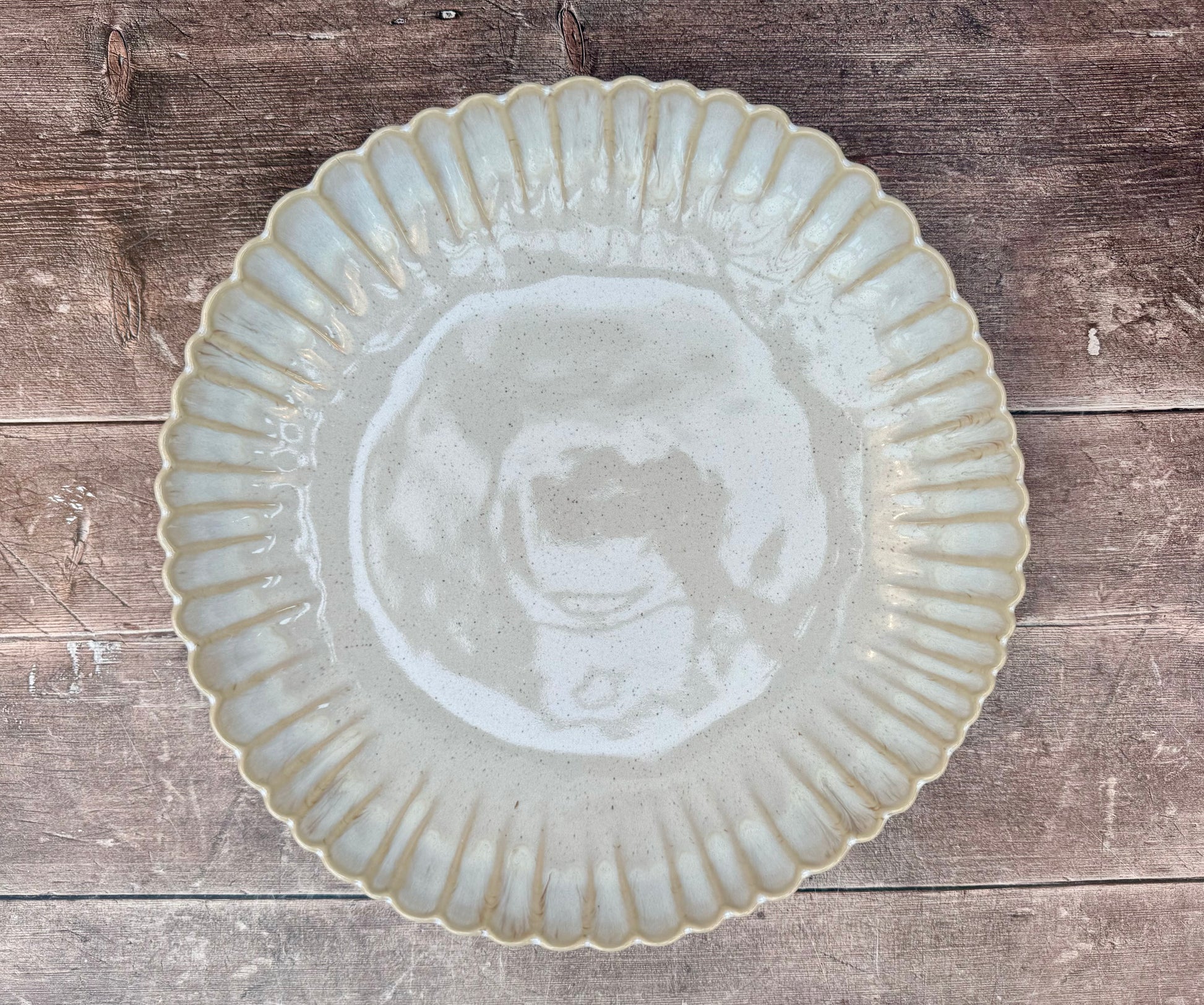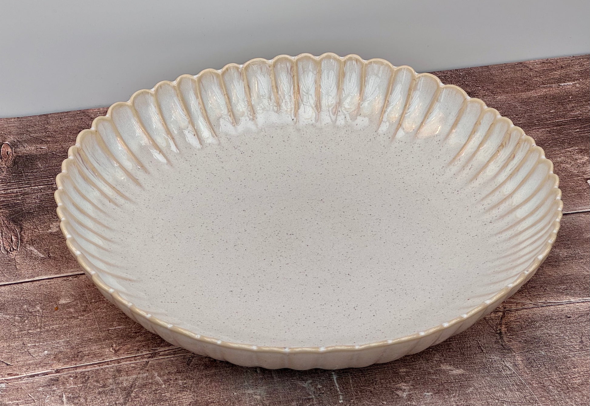 Sand Beige Scallop Edge Large Serving Bowl, 36cm