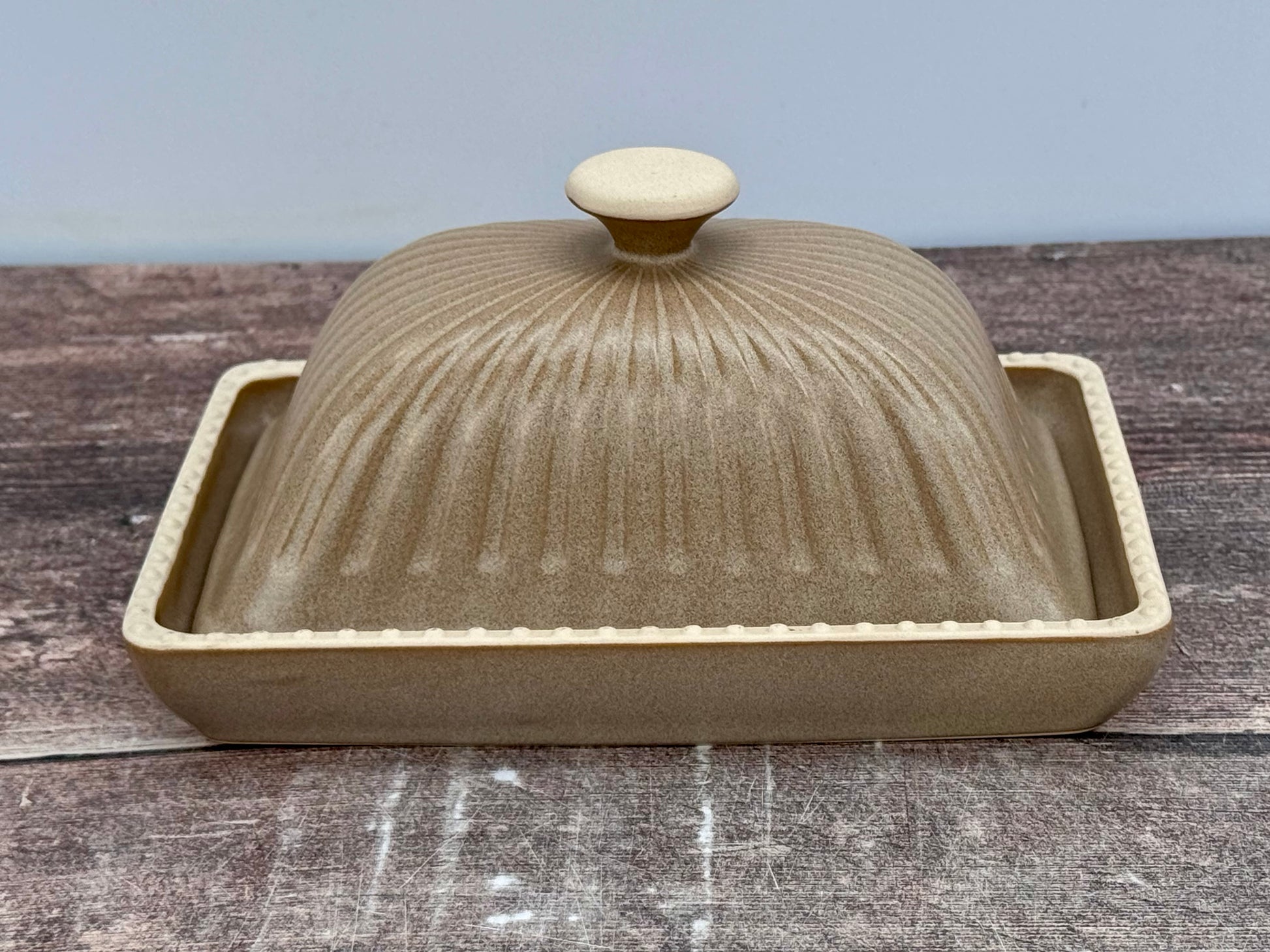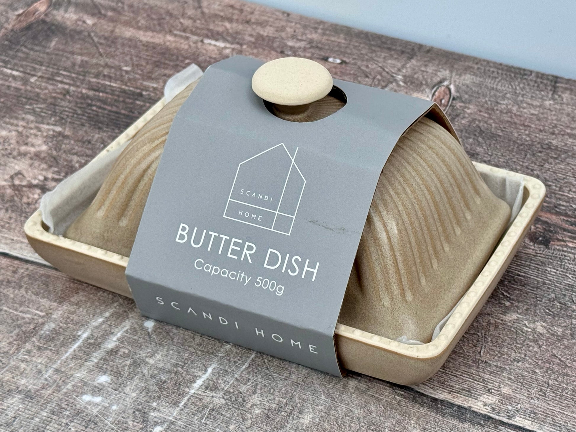 A natural tone brown butter dish that brings a homely touch to the kitchen.