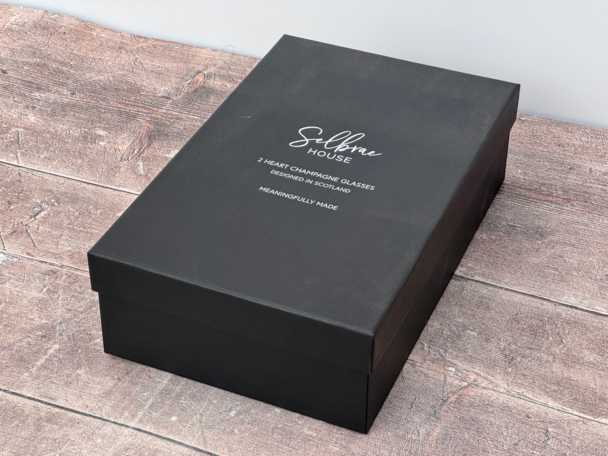 The perfect anniversary or wedding present, each glass has an interlocking set of 2 hearts on the front of the glass