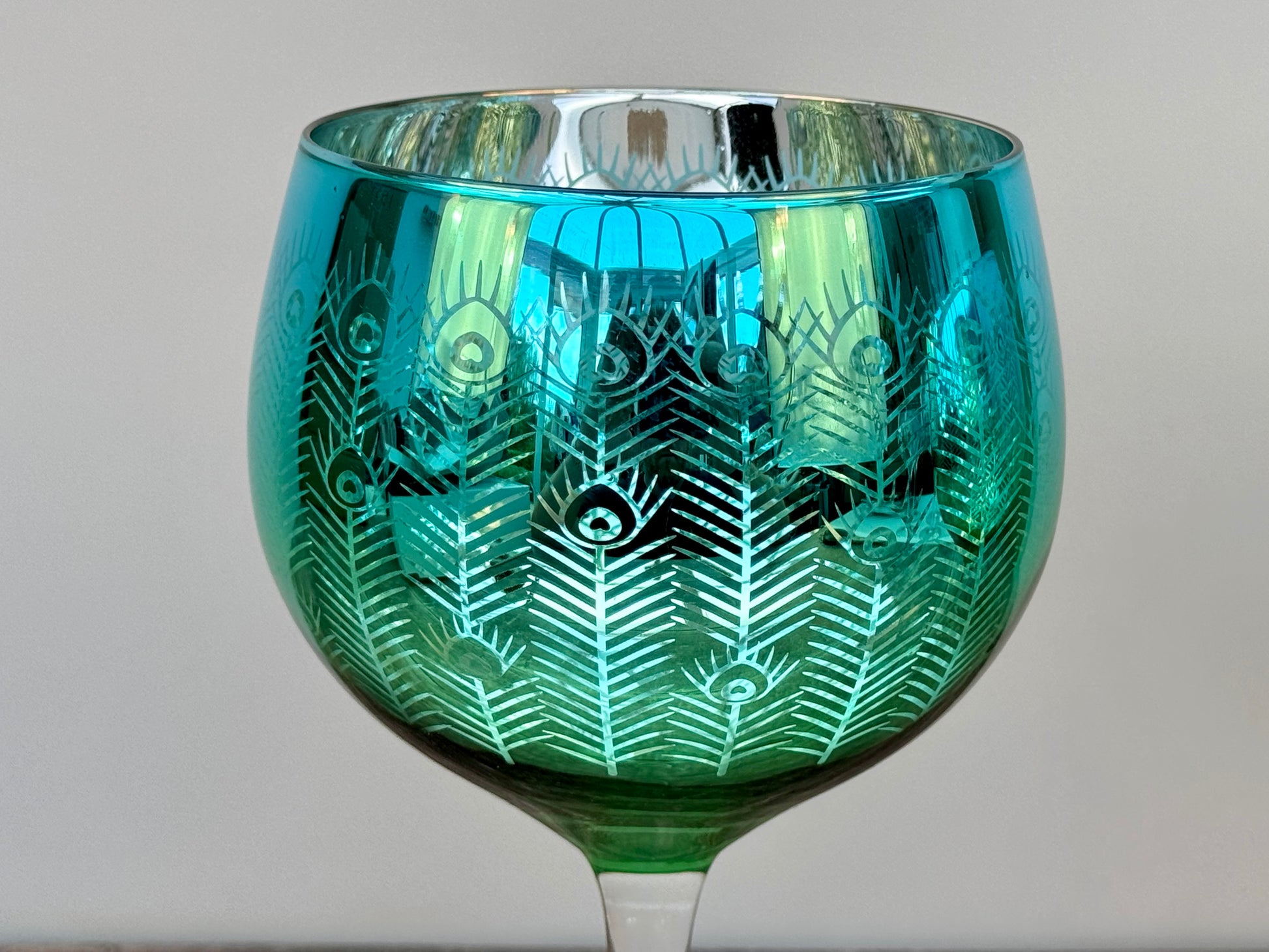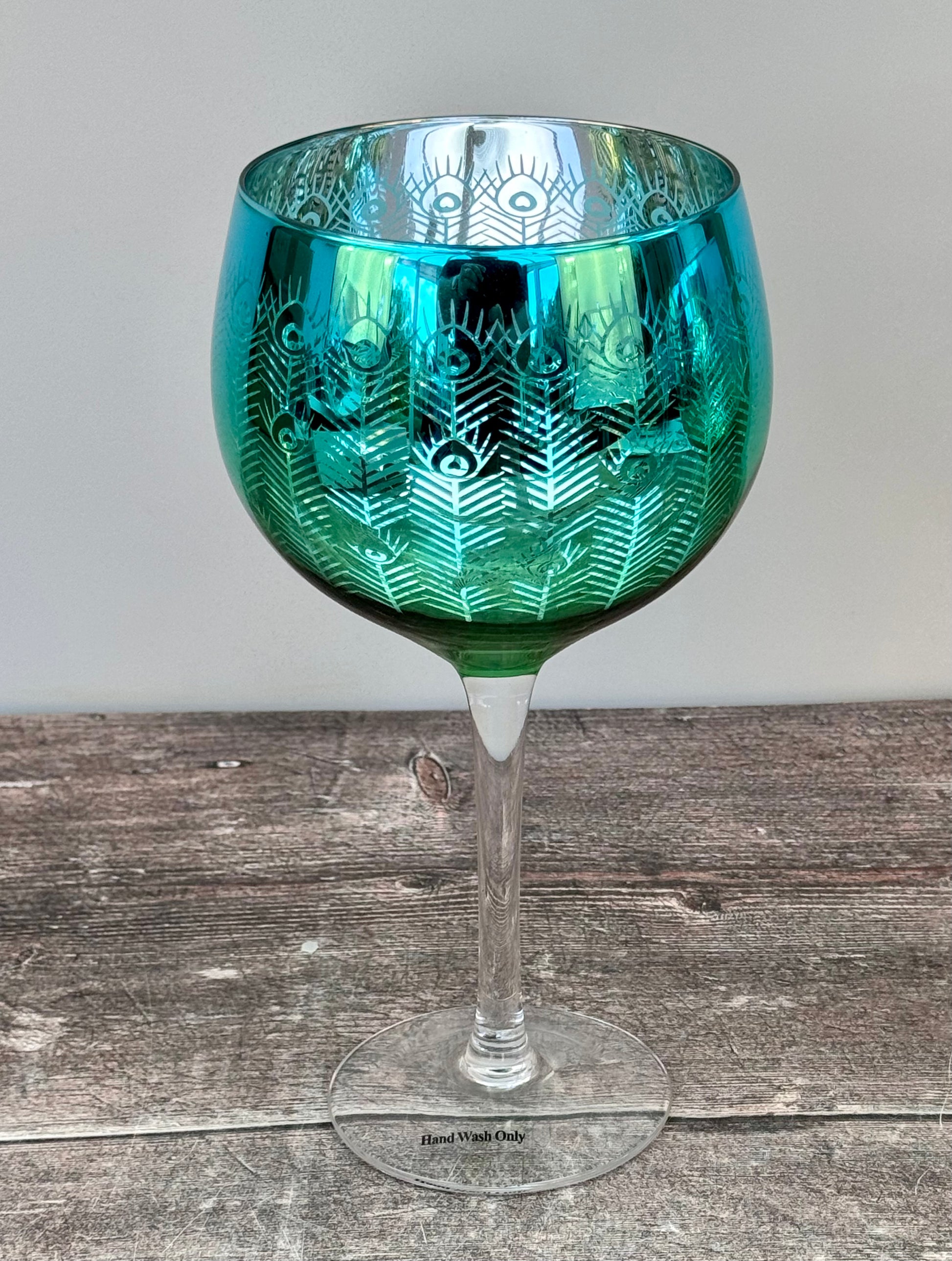 Set of 2 Peacock Gin Balloon Copa Glasses