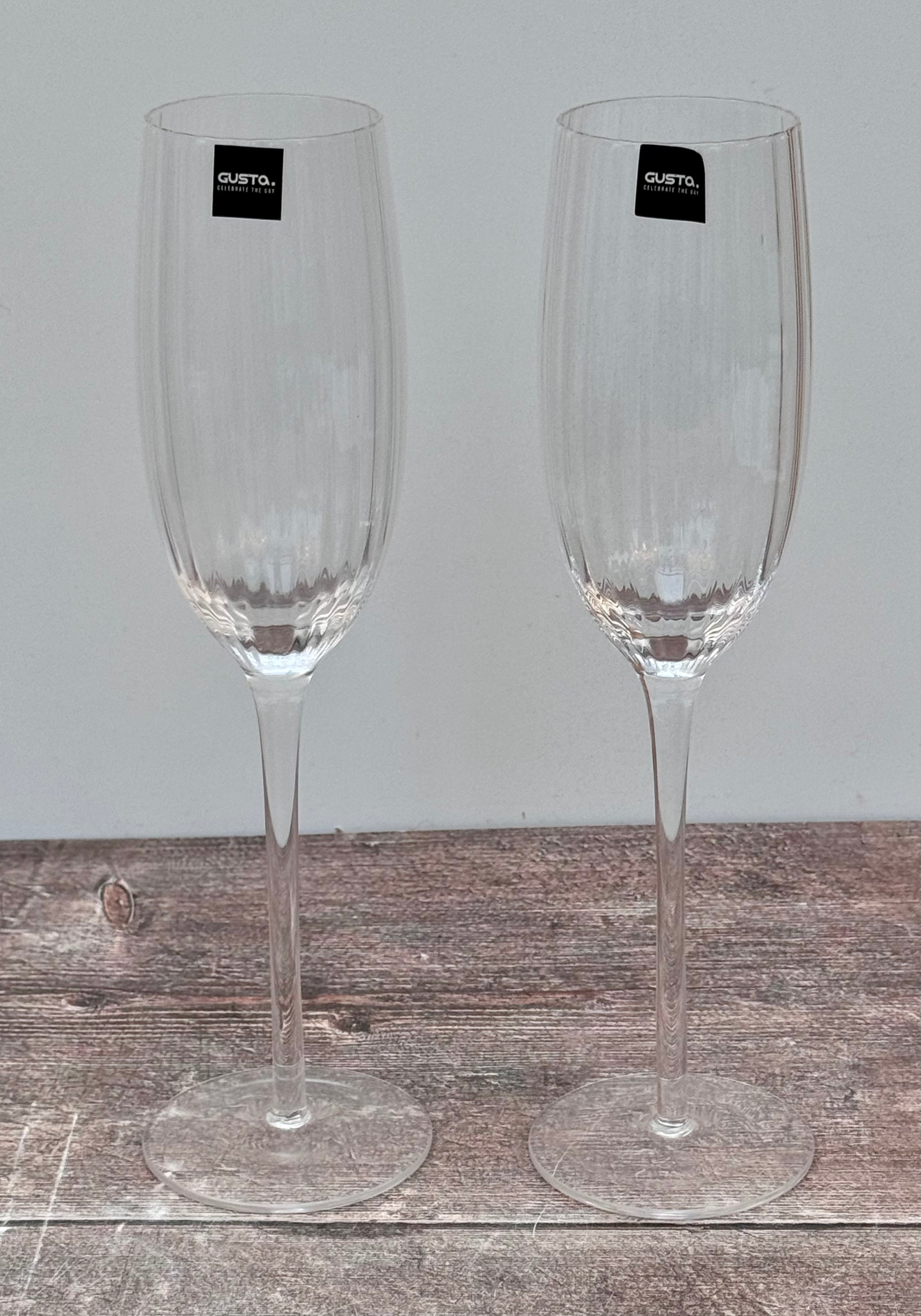 Set of 2 Ribbed/Linear Champagne Flutes/Glasses