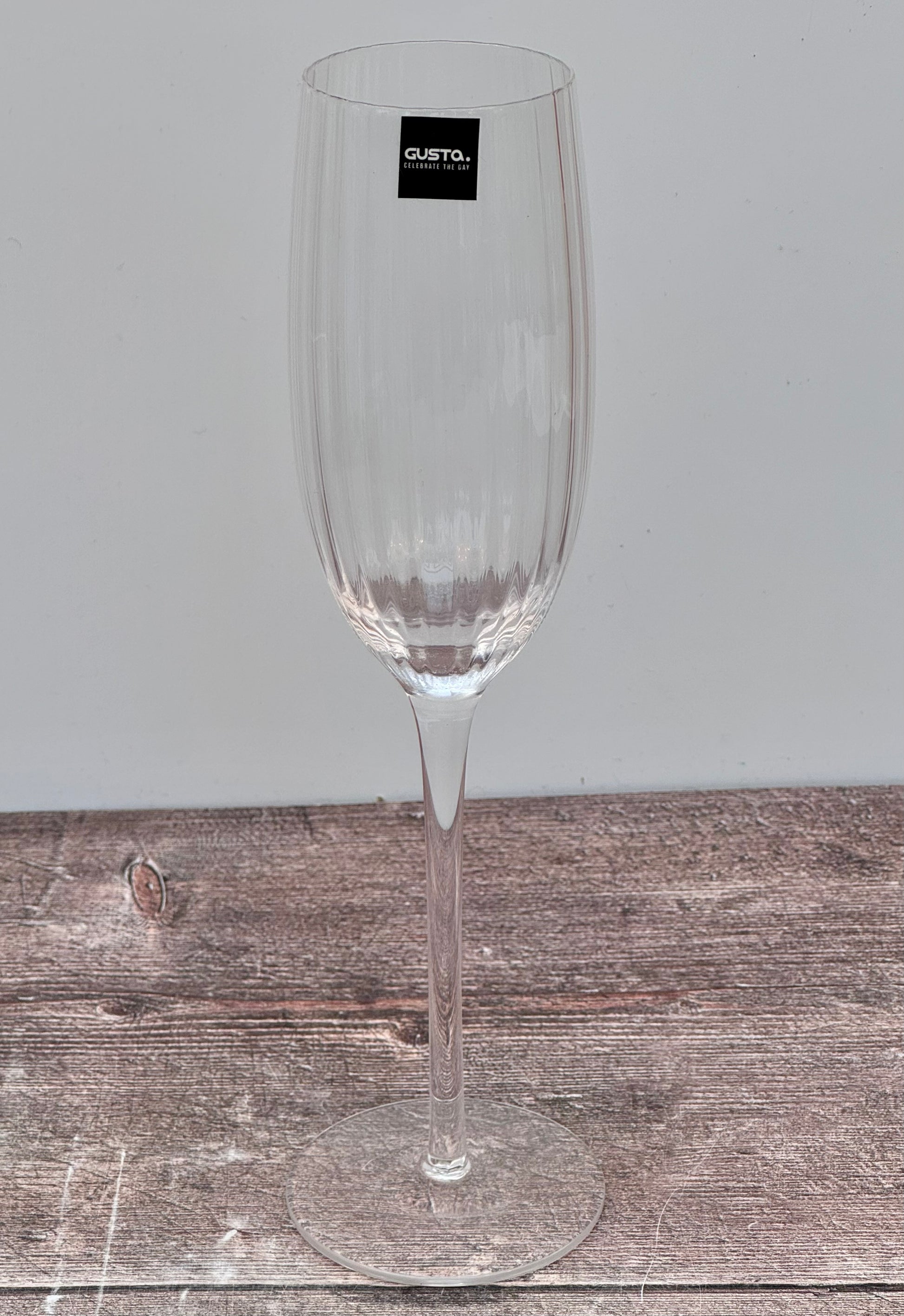 The contemporary shaped bowl with rounded corners and the tall elegant stems give these beautiful flutes an Art Deco look.