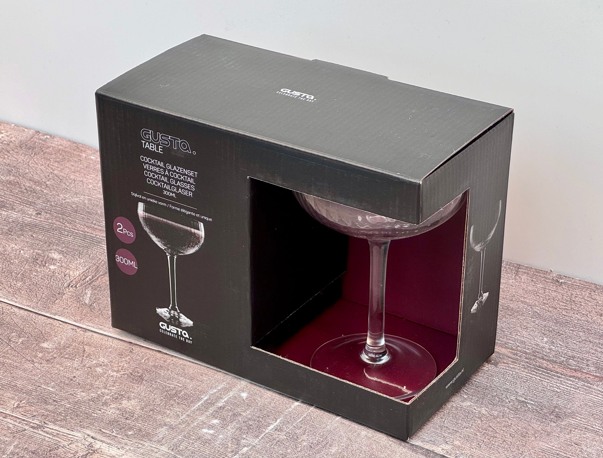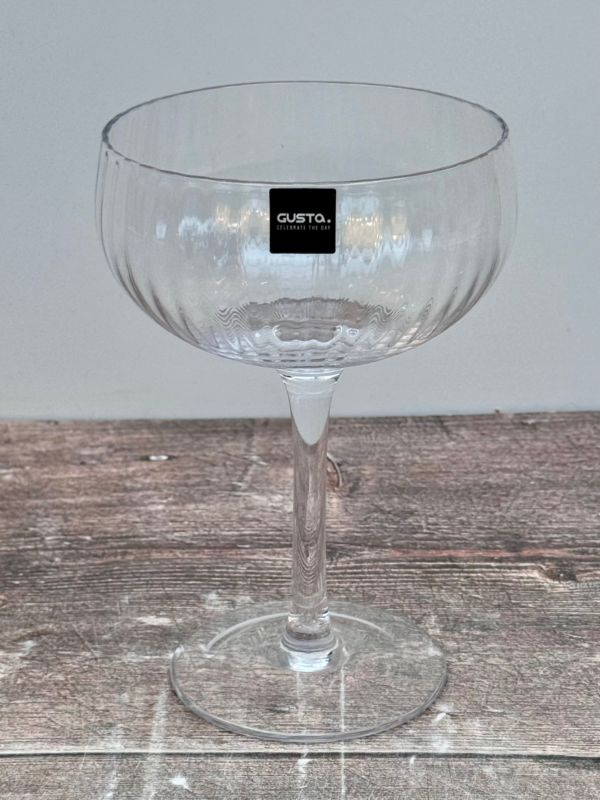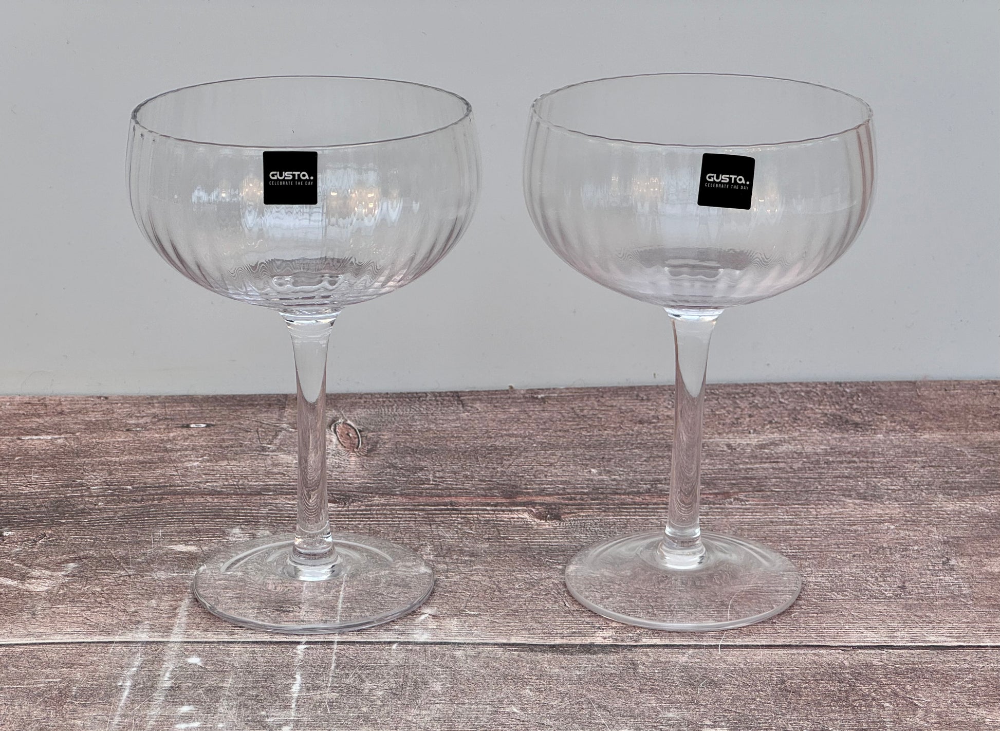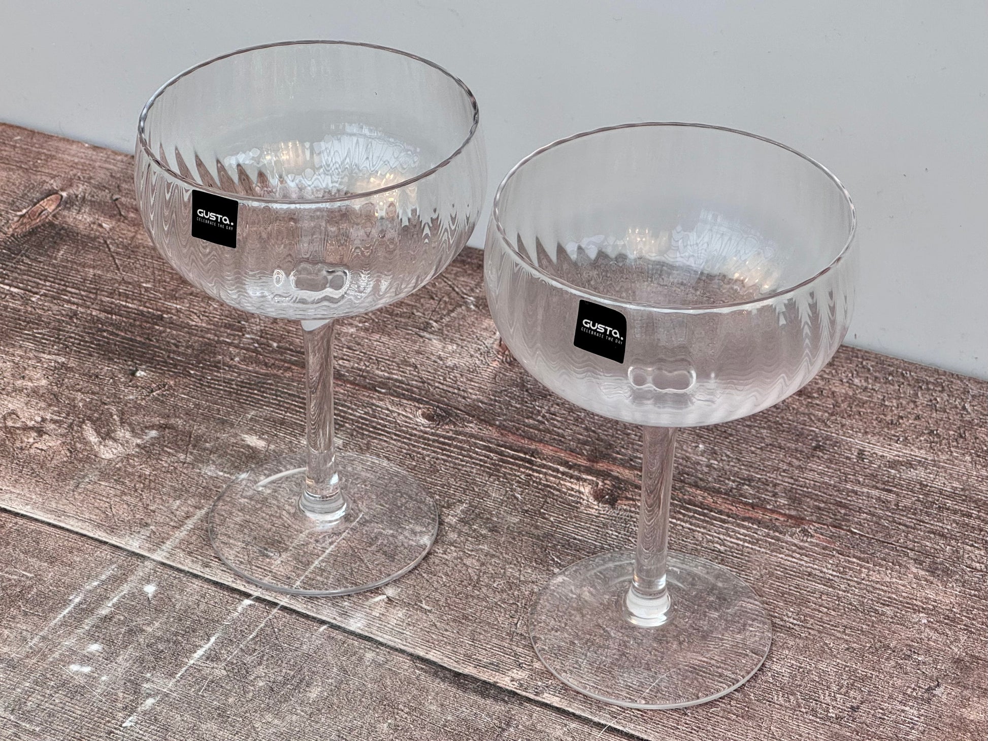 Set of 2 Ribbed/Linear Empire Champagne/Cocktail Saucer/Glasses