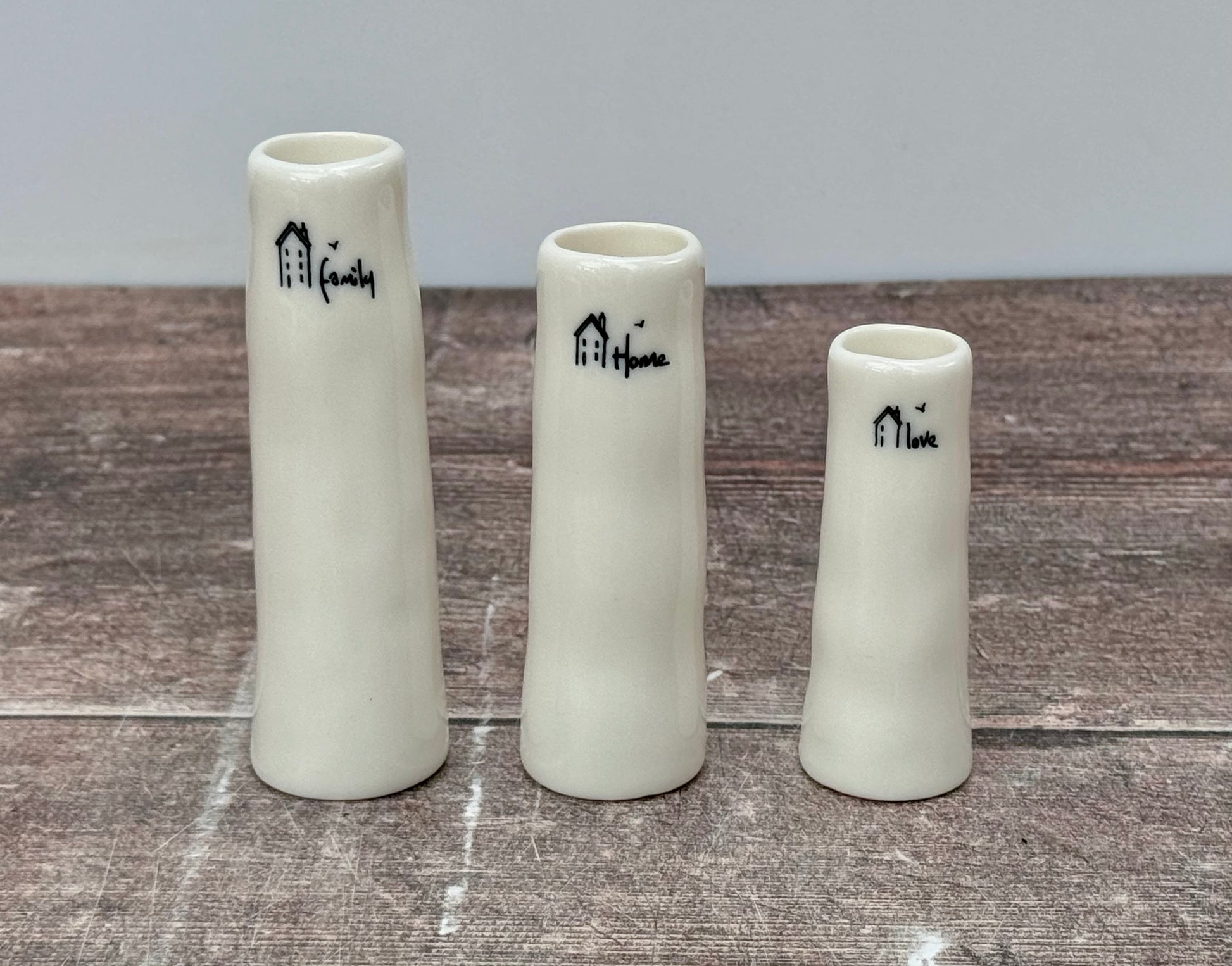 Set of 3 Bud Vases, ‘Family, Home, Love’