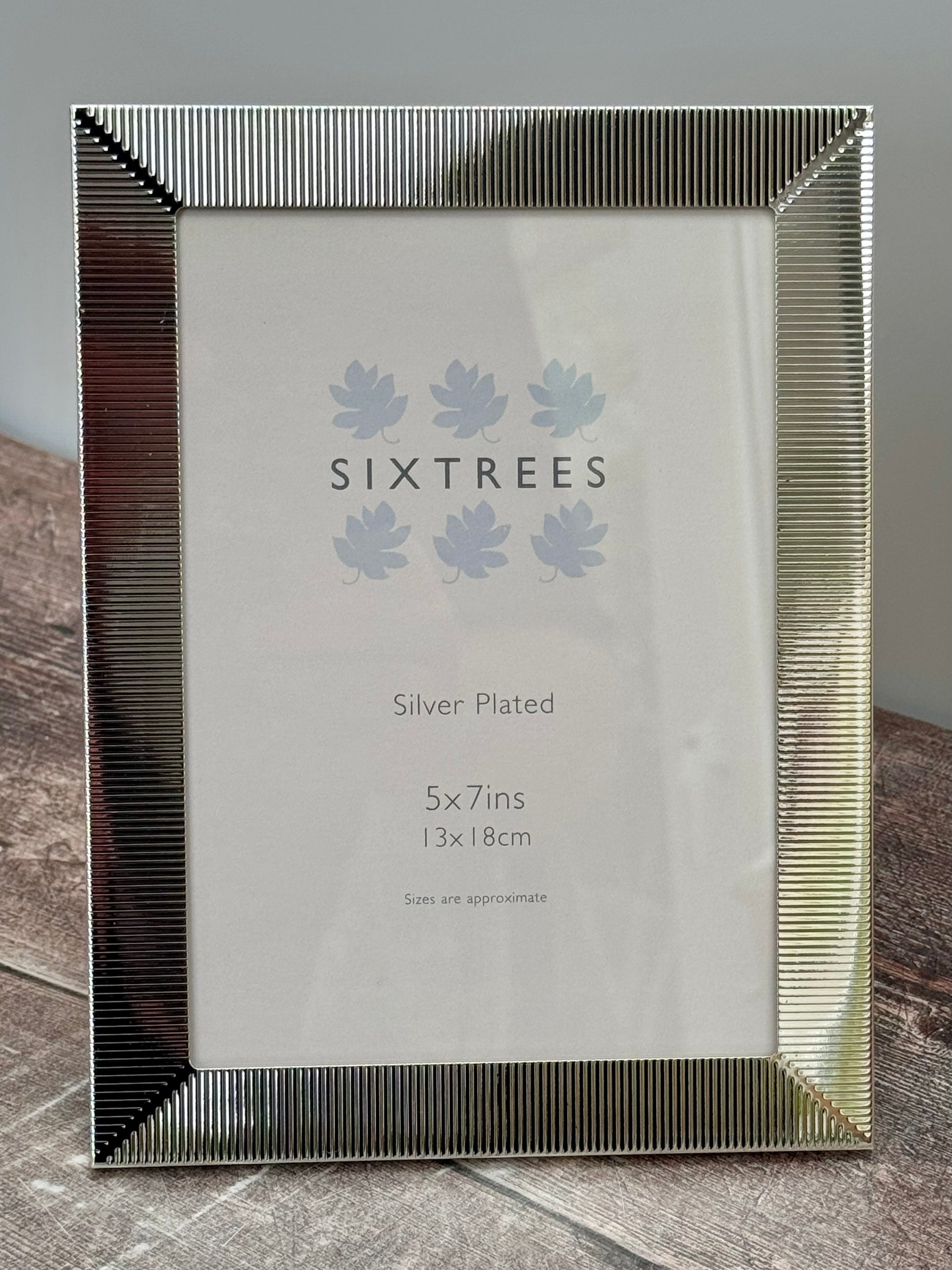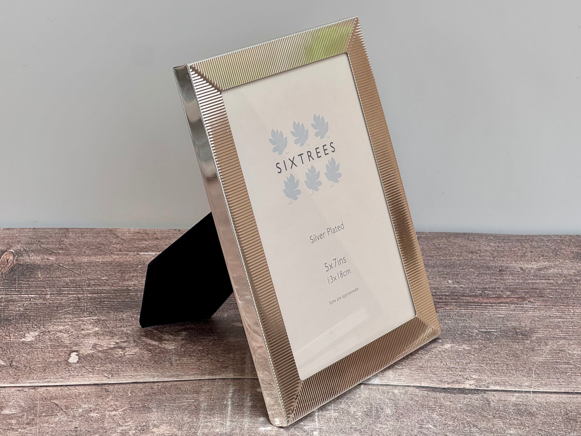 This Sixtrees silver plated photo frame has a striped border - simple and elegant.
