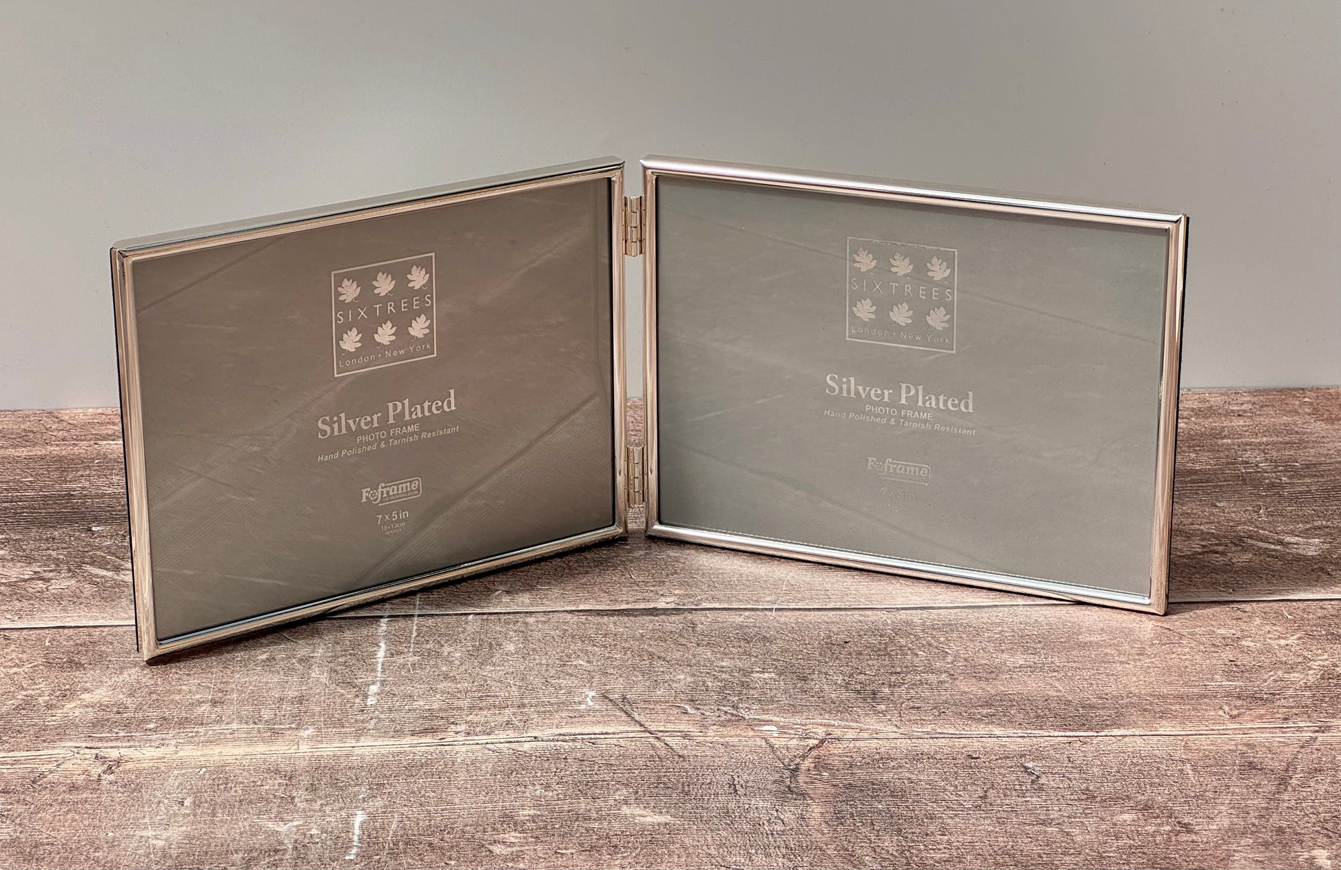 Sixtrees Slim Silver Plated Double Landscape Photo Frame, 5’ x 7’