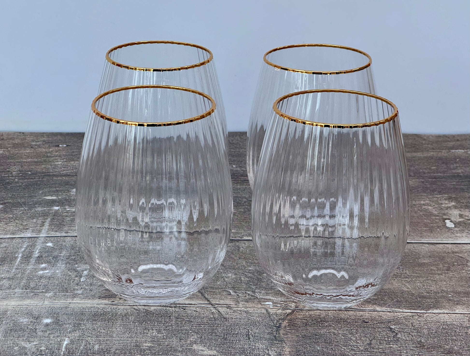 Stemless Wine Glasses with a Gold Rim, Box of 4