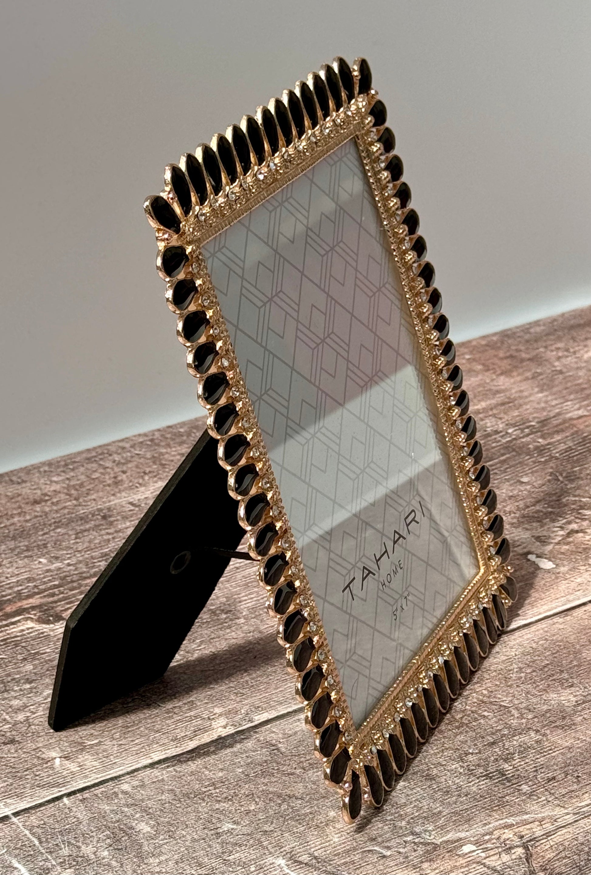 Tahari Black and Gold Oval Design Photo Frame, 5 x 7