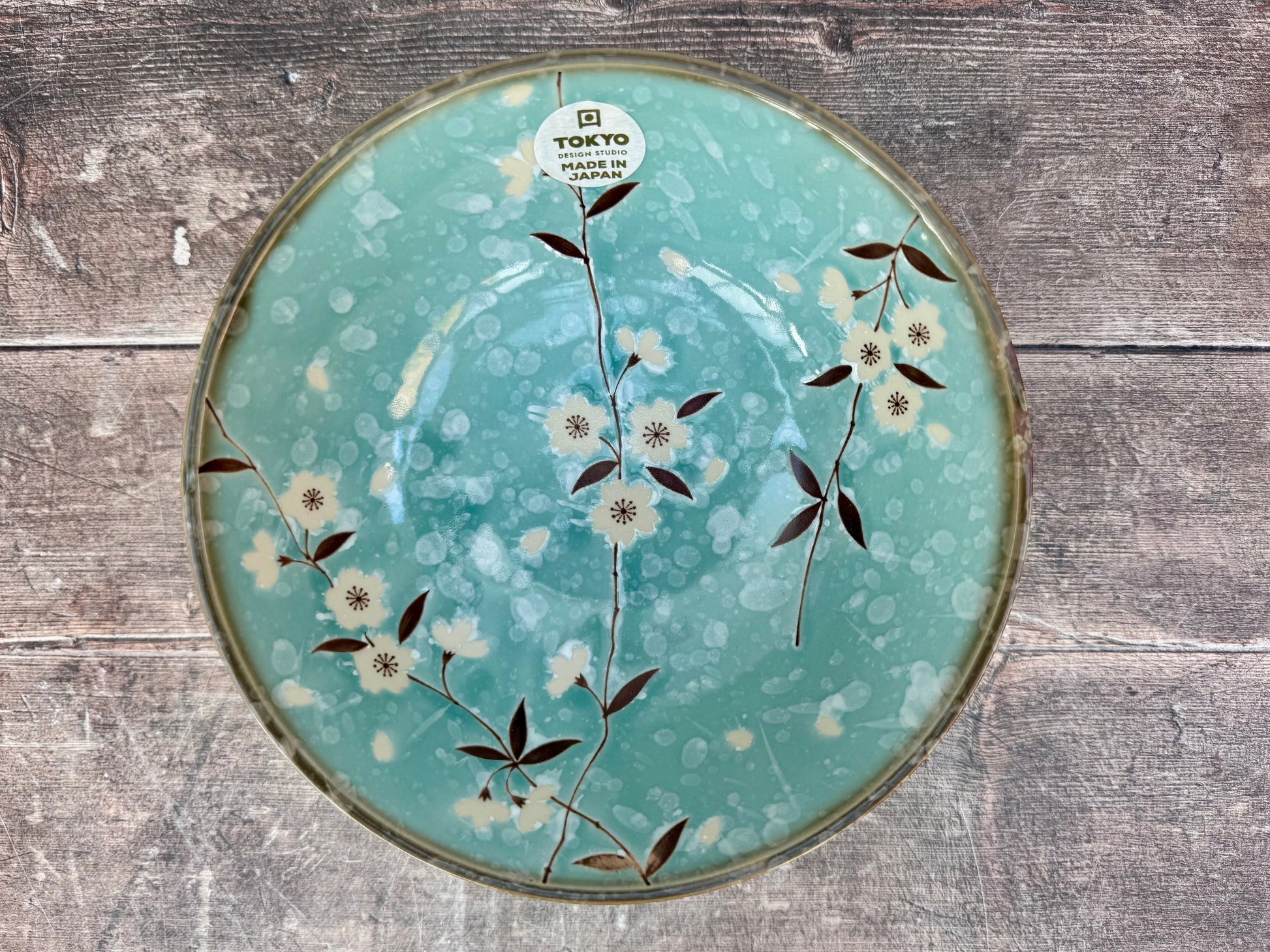 Made in Japan, these plates have a glossy turquoise finish, with an beautiful white sakura/cherry blossom flower pattern. They make a stunning addition to any table.
